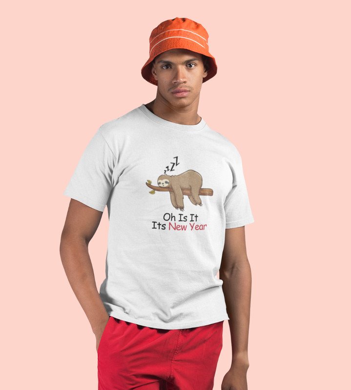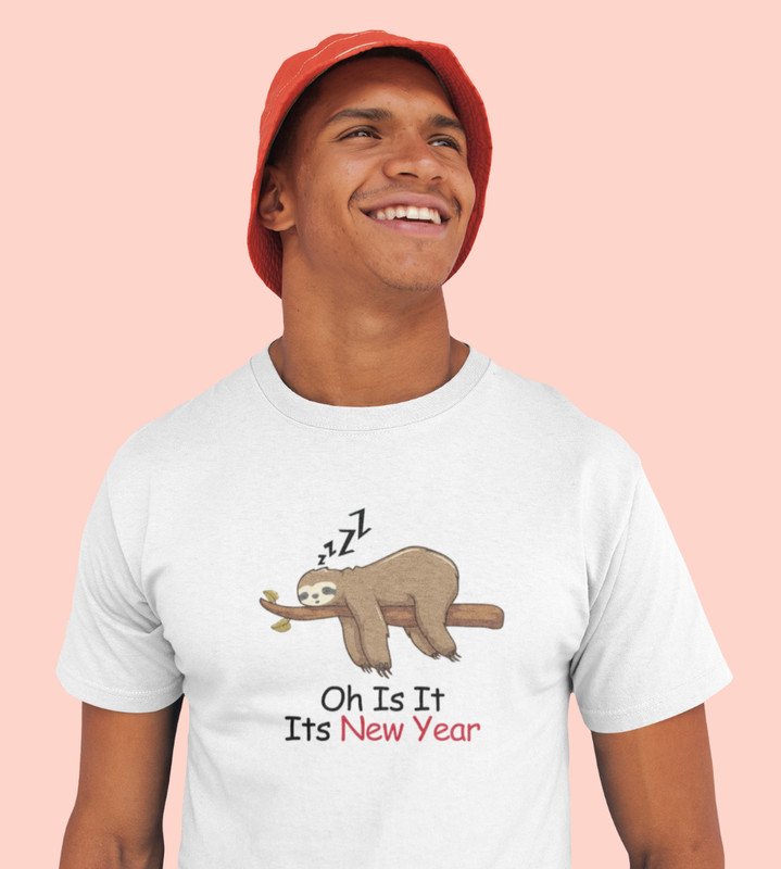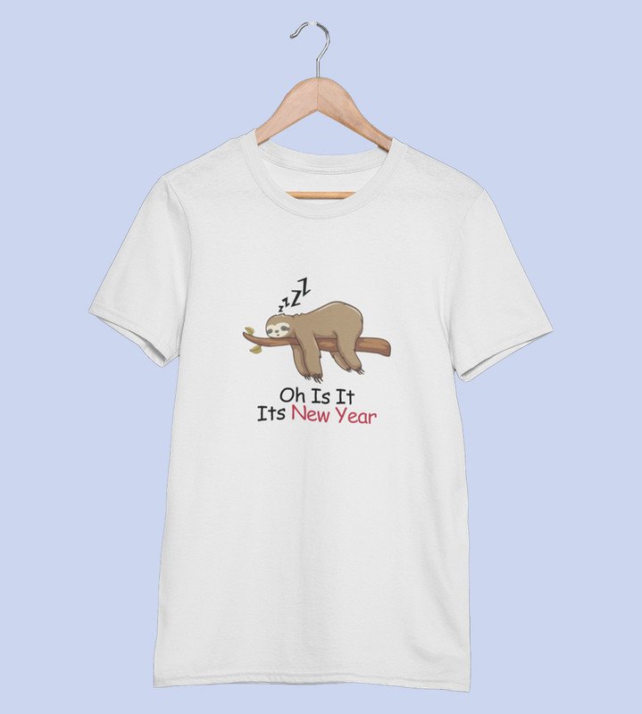Sloth's New Year White Graphic Printed T-shirt For Mens Boys