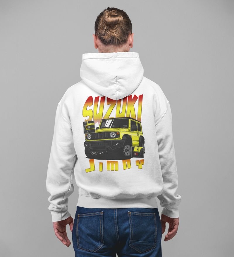Small but Rugged Compact 4x4 Adventure Printed White Hoodie for Men