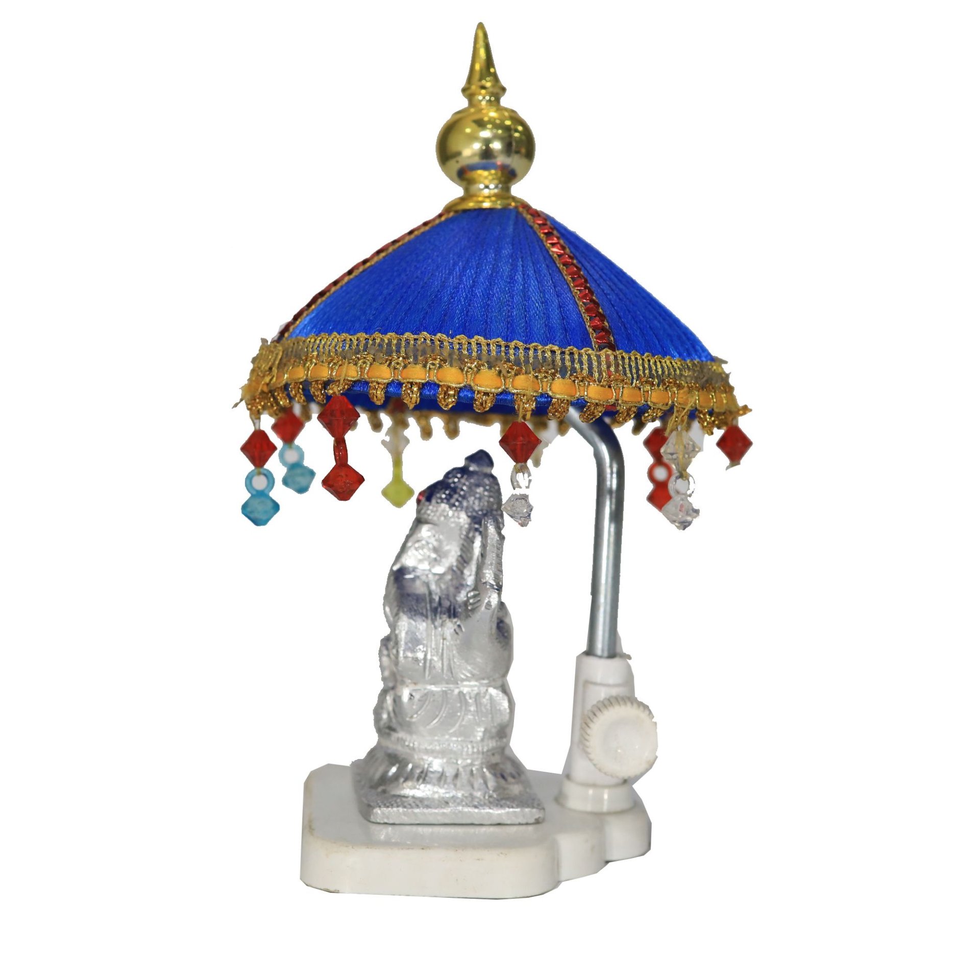 Sterling silver handmade lord Ganesha murti with a chatta, Make every occasion auspicious and divine with with lord ganesha's divine presece in your home. This ornamented deity has been handcrafted to perfection with an intricate and delightful detailing. Give your best wishes and blessings by gifting this idol to your friends and family.