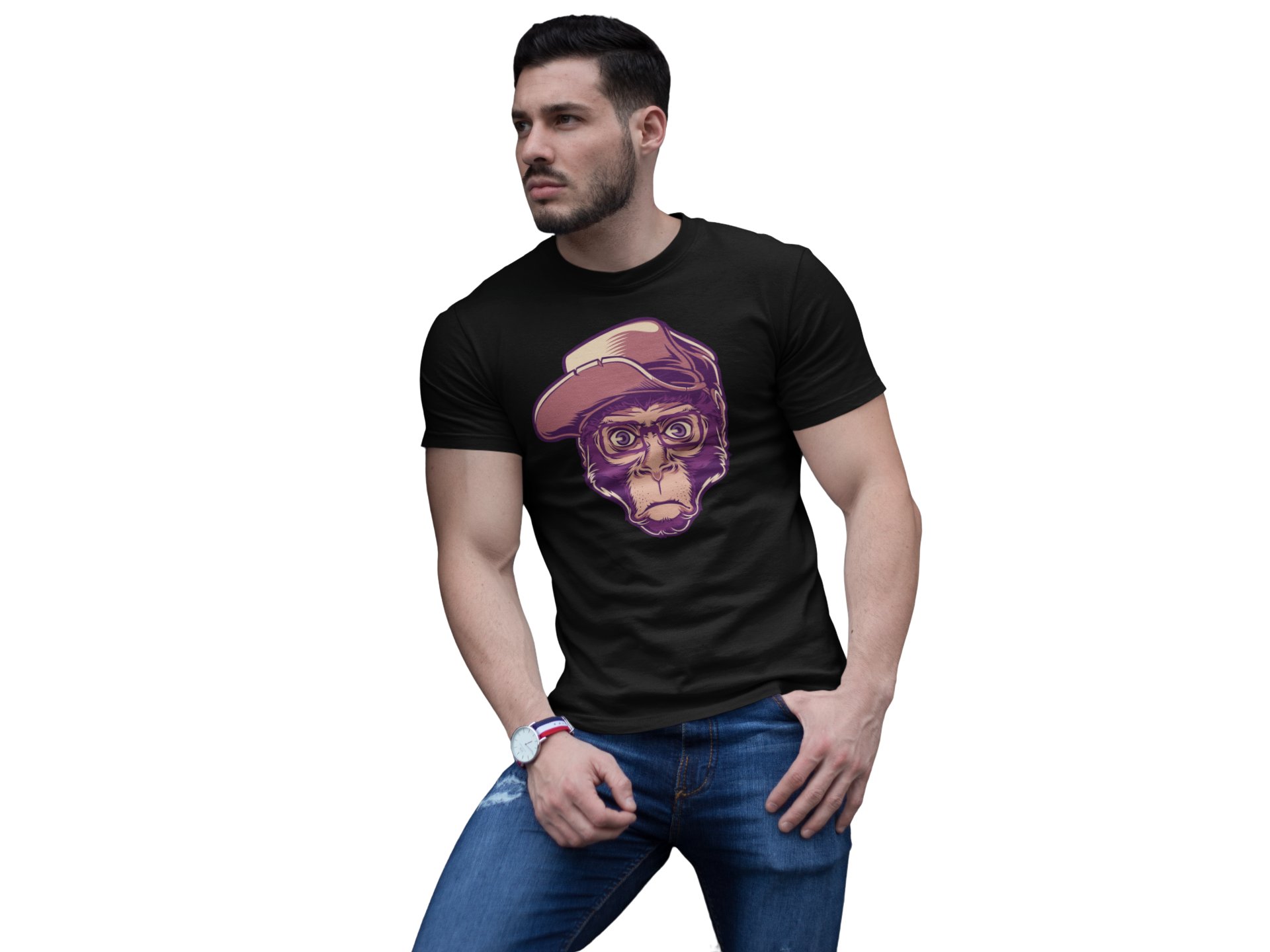 Smart monkey - Black - printed T-shirts -Abstract Funny thoughtful creative illustrations - Men's stylish clothing - Cool tees for boys