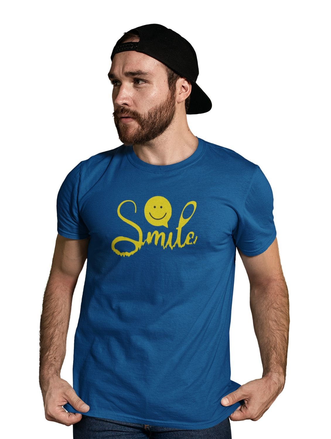Smile Please Emoji Printed T-shirt (Blue) - Clothes for Emoji Lovers - Suitable for Fun Events - Foremost Gifting Material for Your Friends and Close Ones
