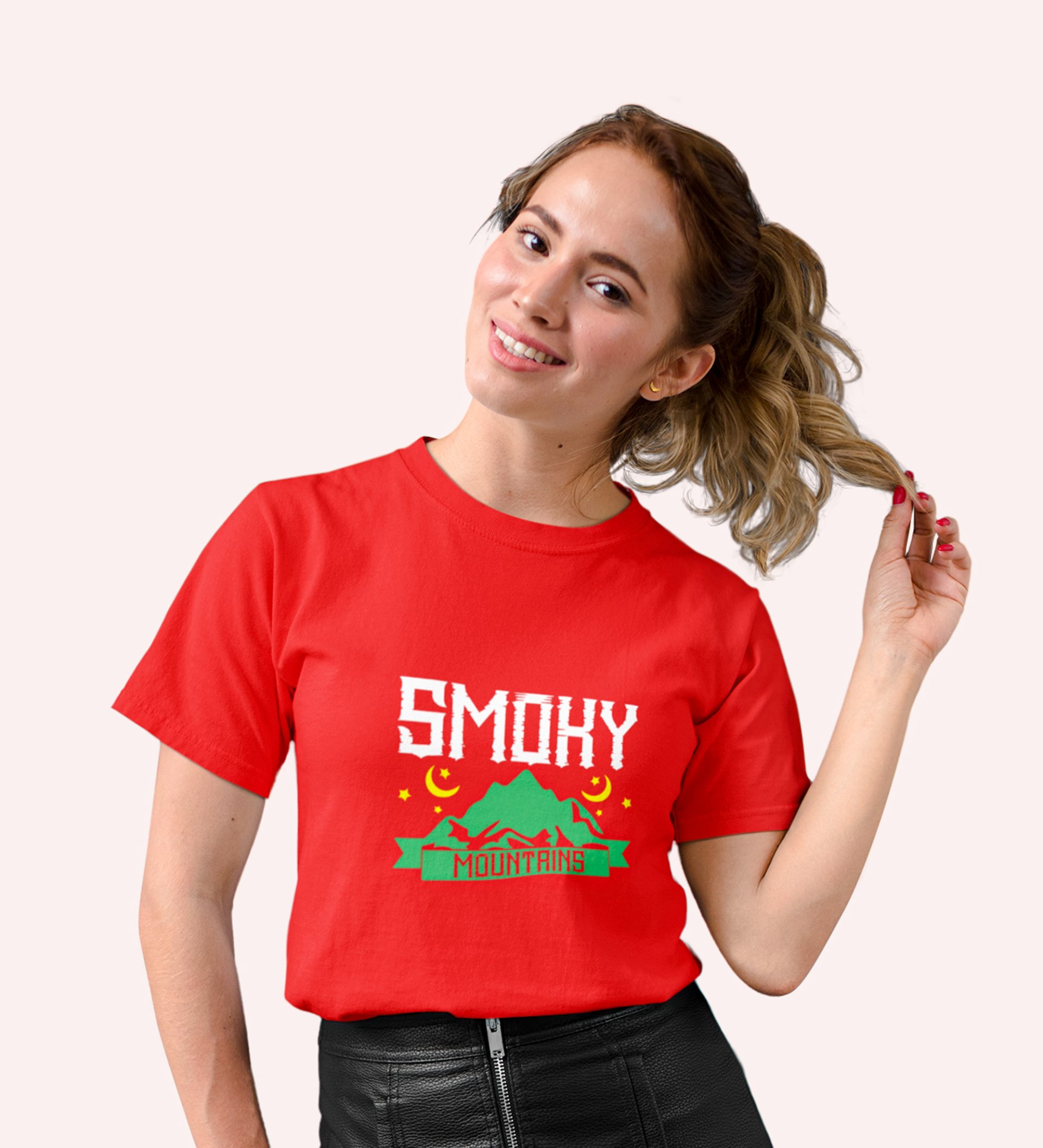 HopOfferSmoky Mountains Red Round Neck Cotton Half Sleeved Women's T-Shirt with Printed Graphics