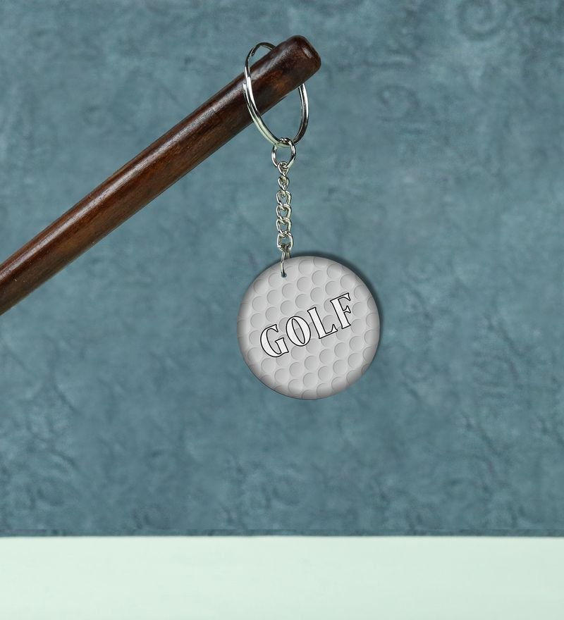 Smooth Swing Style Golf Ball Printed Round Keychain Pack of 2