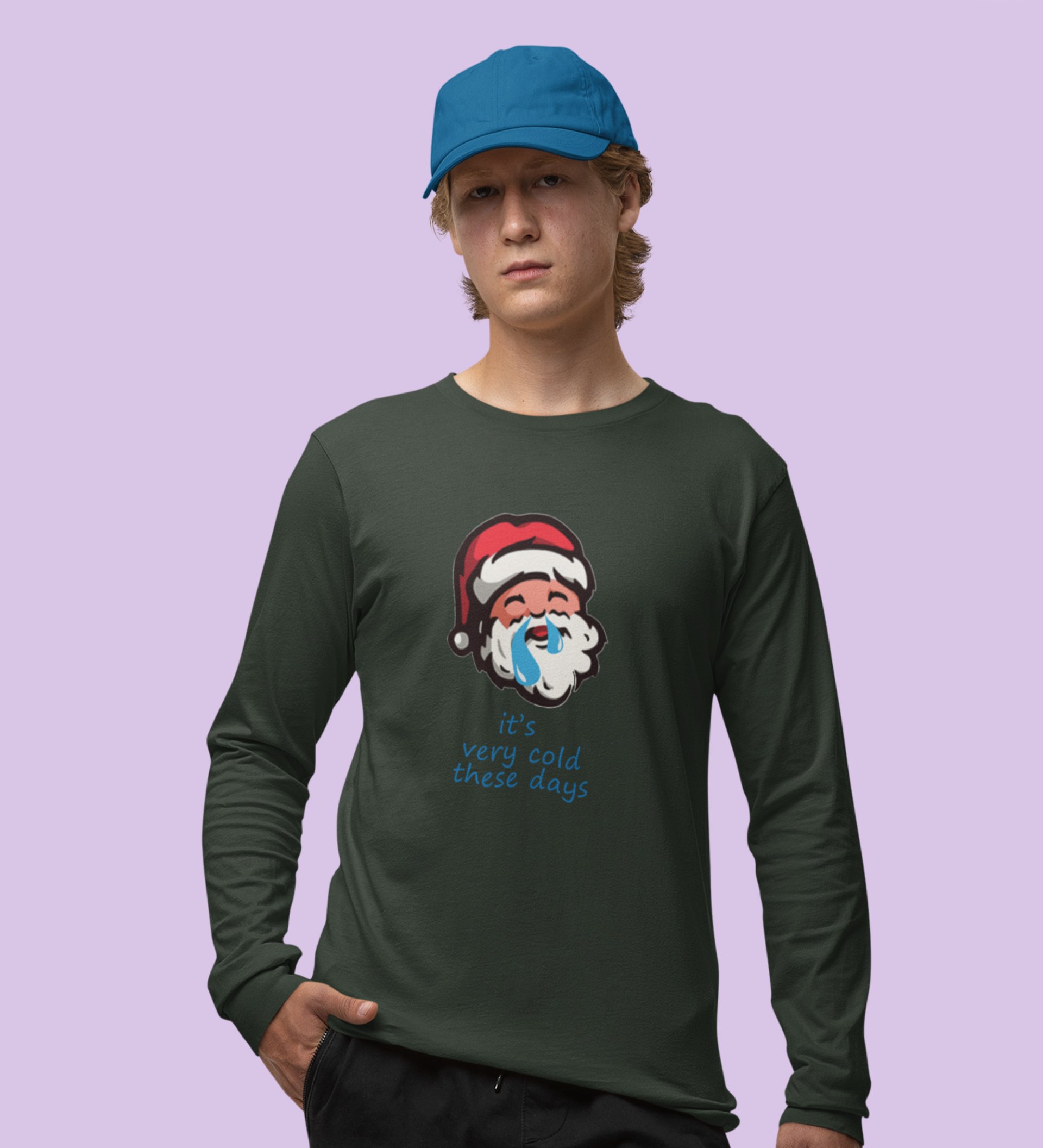 Sneezy Santa: Funny & Cute DesignerFull Sleeve T-shirt Green Perfect Gift For Secret Santa
