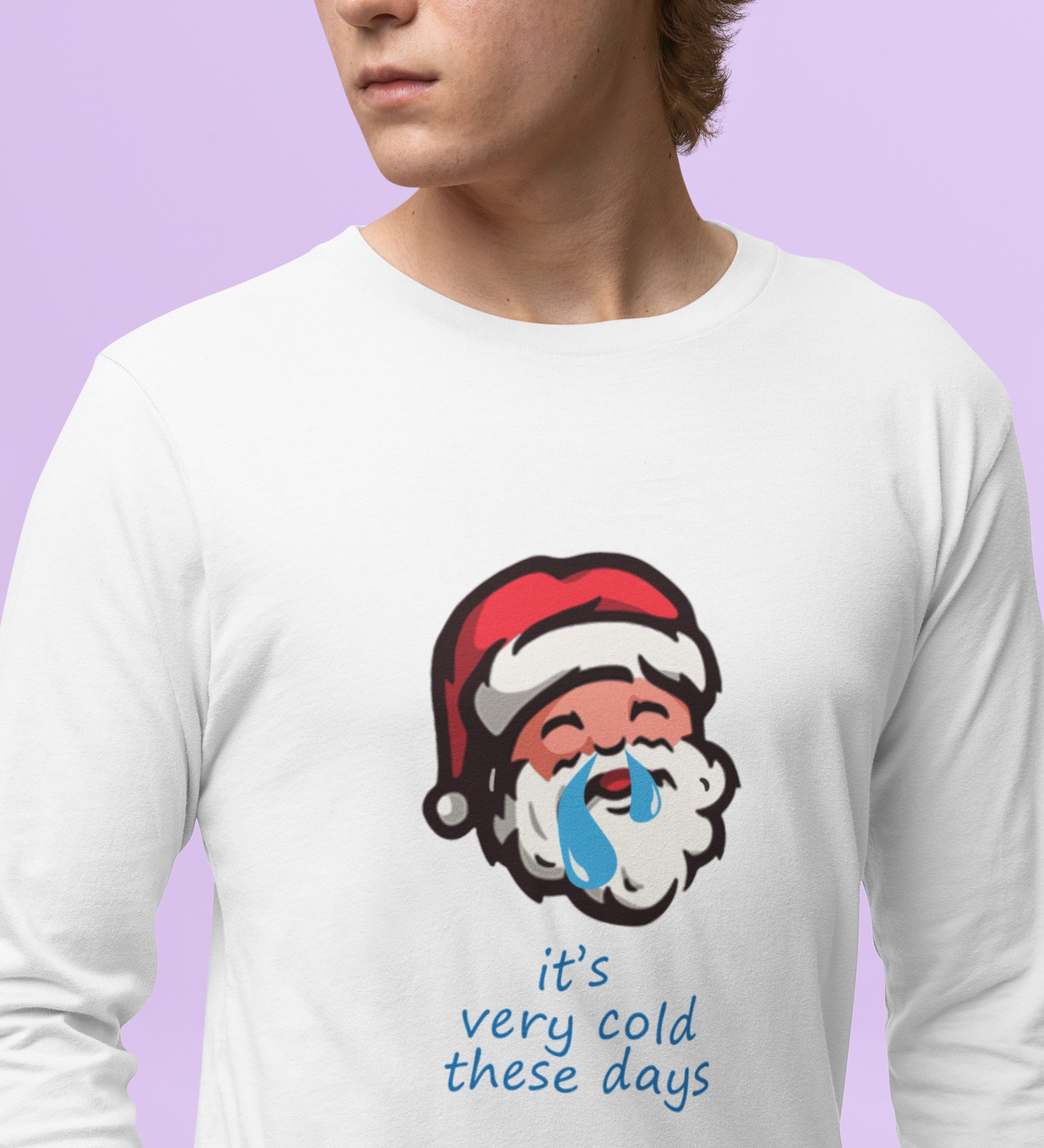 Sneezy Santa: Funny & Cute DesignerFull Sleeve T-shirt White Perfect Gift For Secret Santa