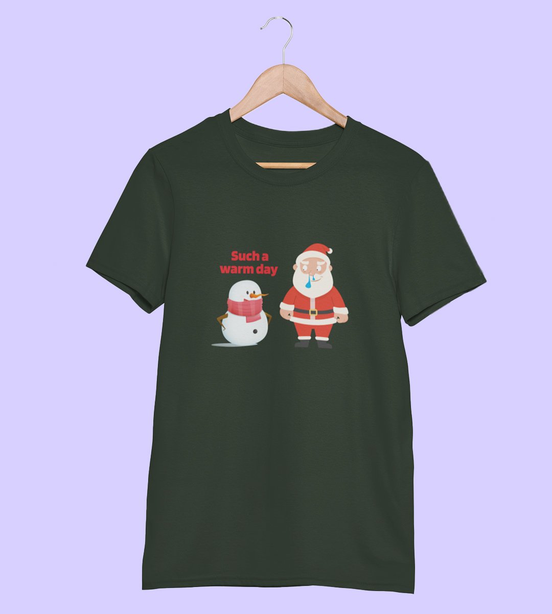 Sneezy Santa: Funny & Cute Printed T-shirt (Green) Perfect Gift For Secret Santa