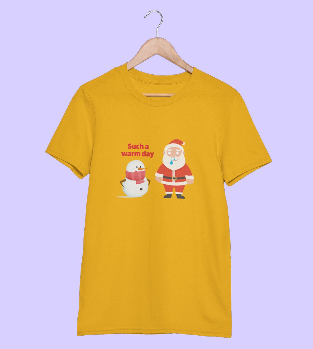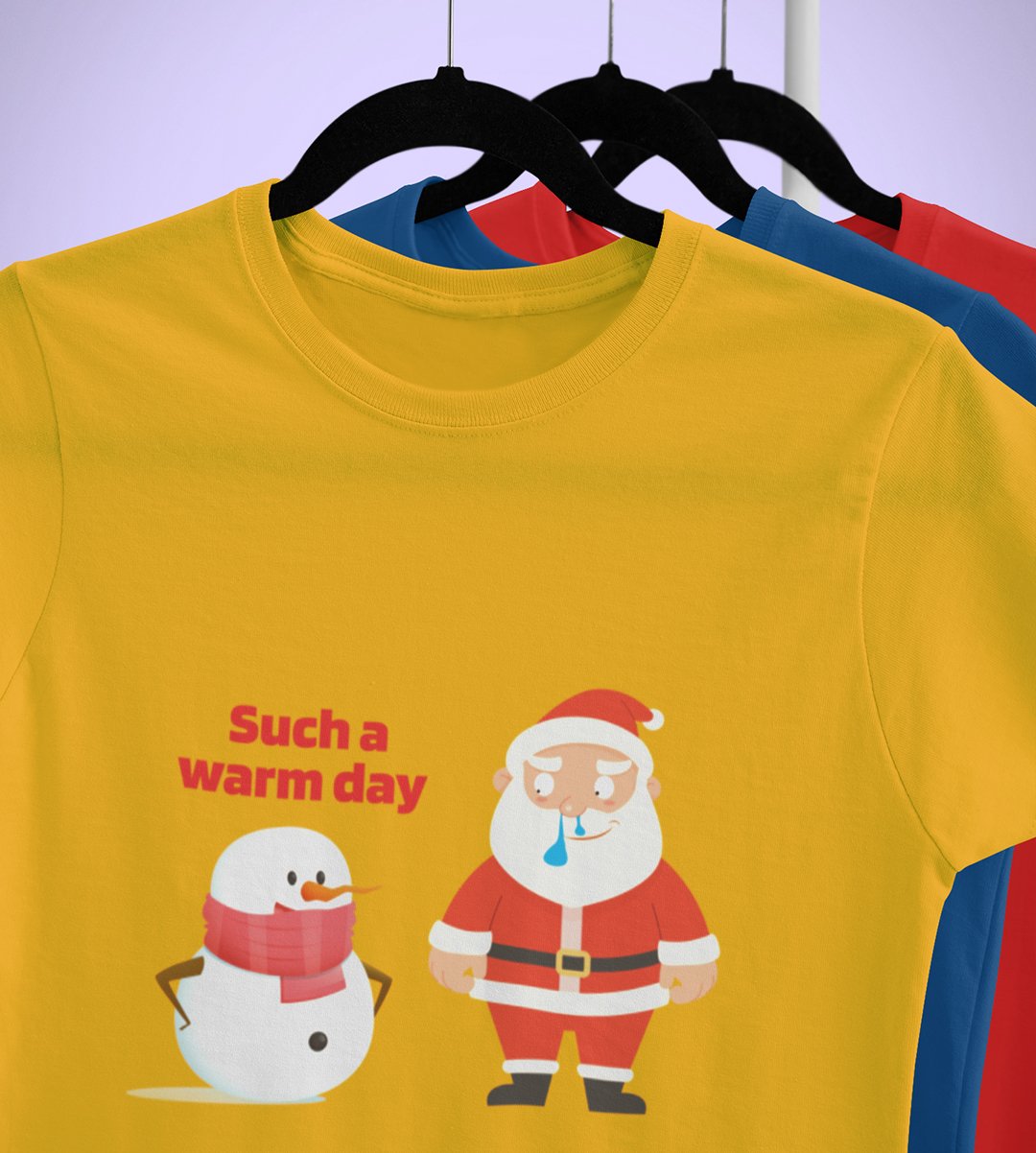 Sneezy Santa: Funny & Cute Printed T-shirt (Yellow) Perfect Gift For Secret Santa