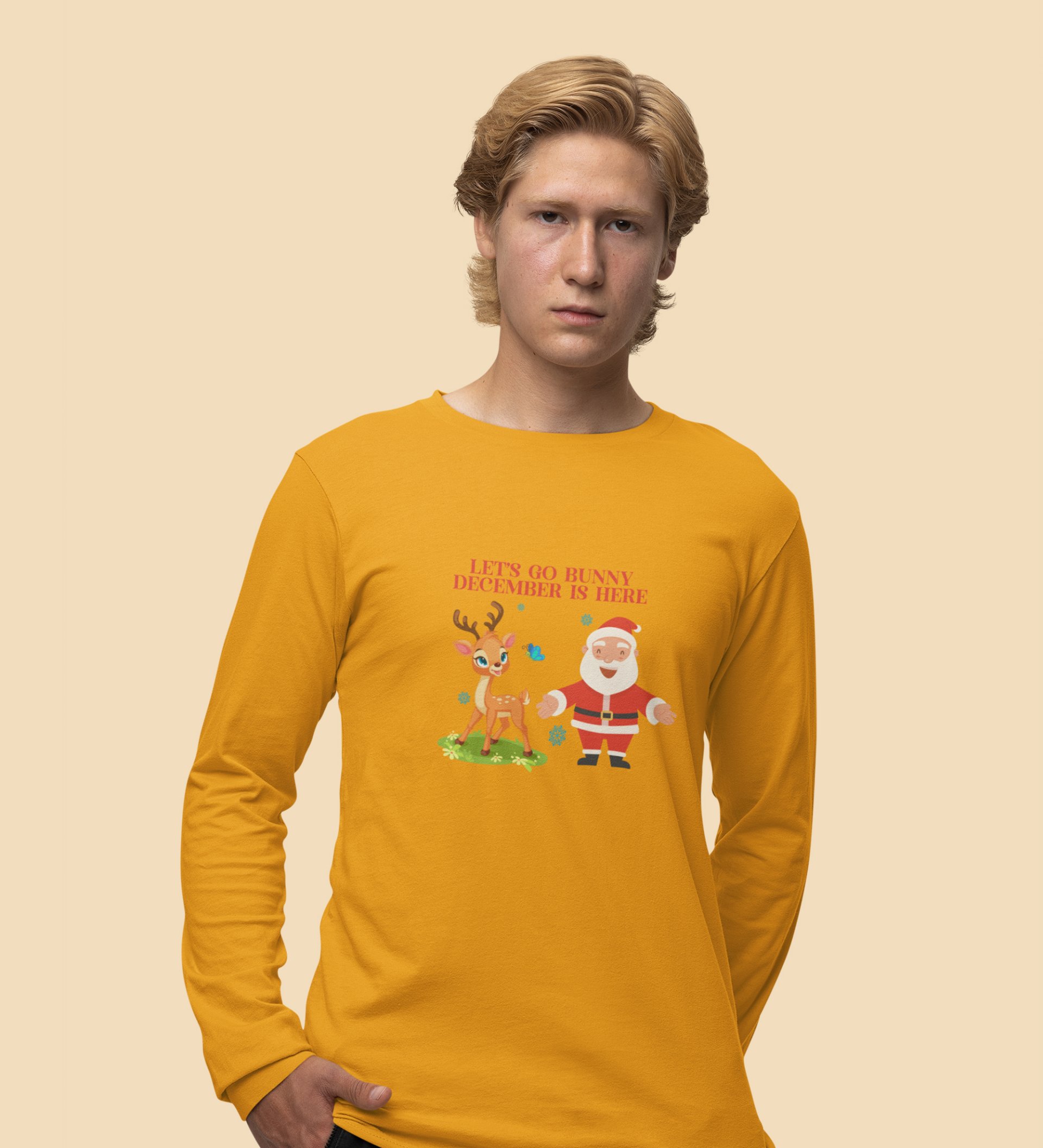Snow Falls, Christmas Calls: Beautifully DesignedFull Sleeve T-shirt Yellow Perfect Gift For Christmas Eve