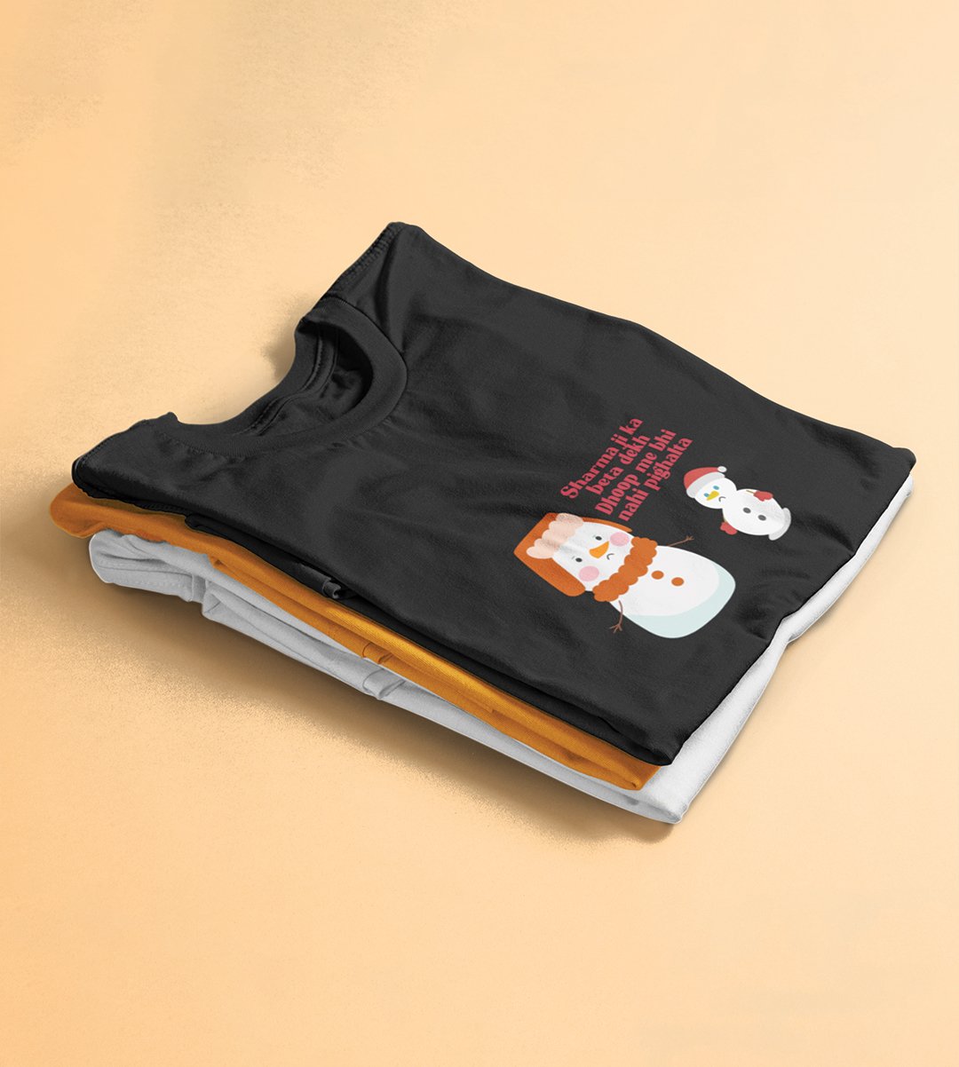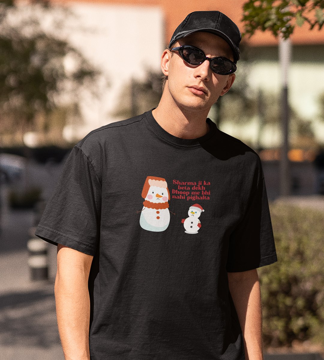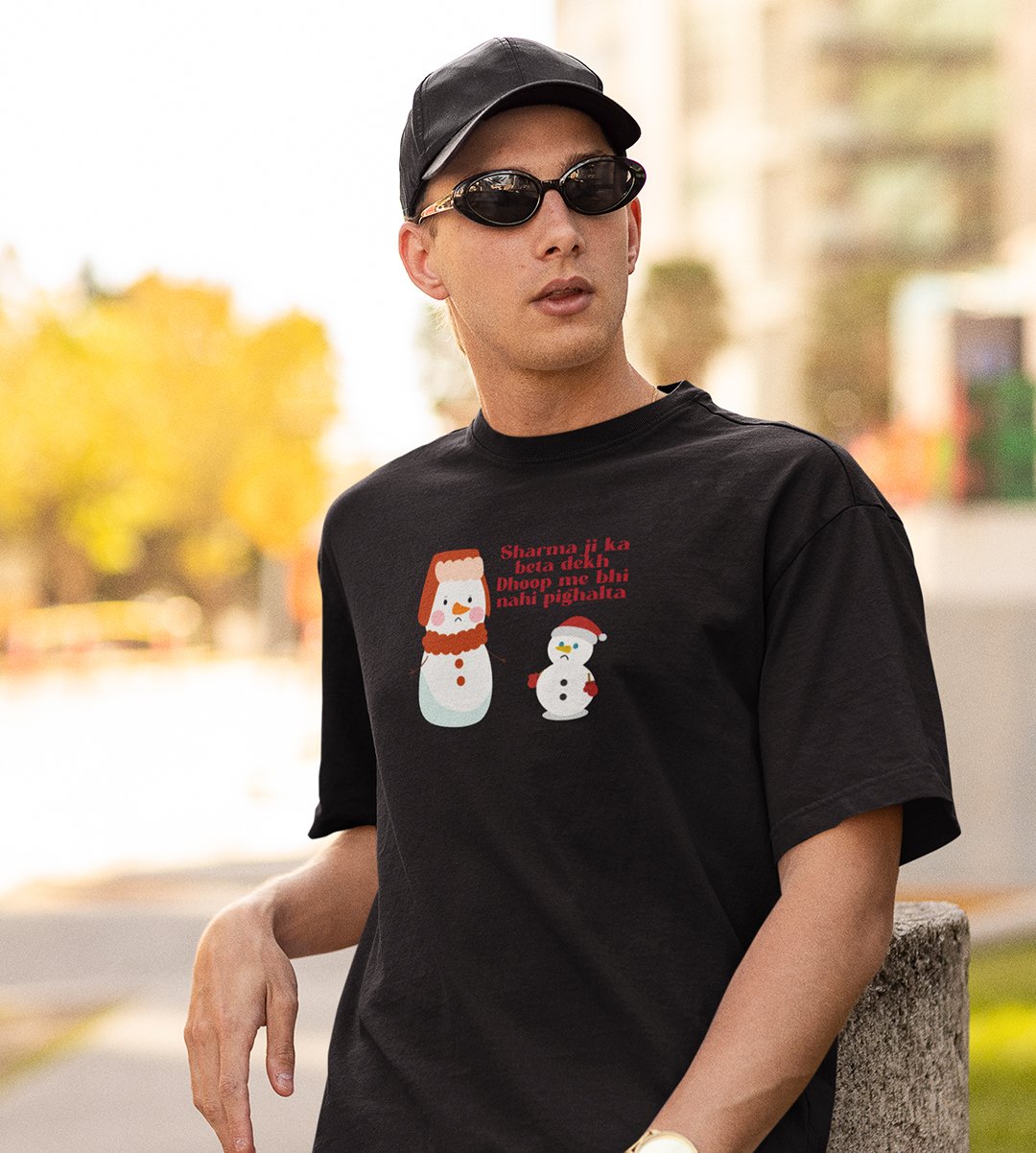 Snowman Sharmaji : Beautifully Crafted T-shirt (Black) Perfect Gift For Secret Santa