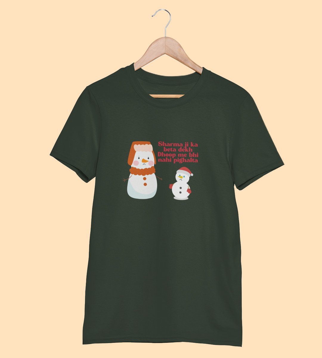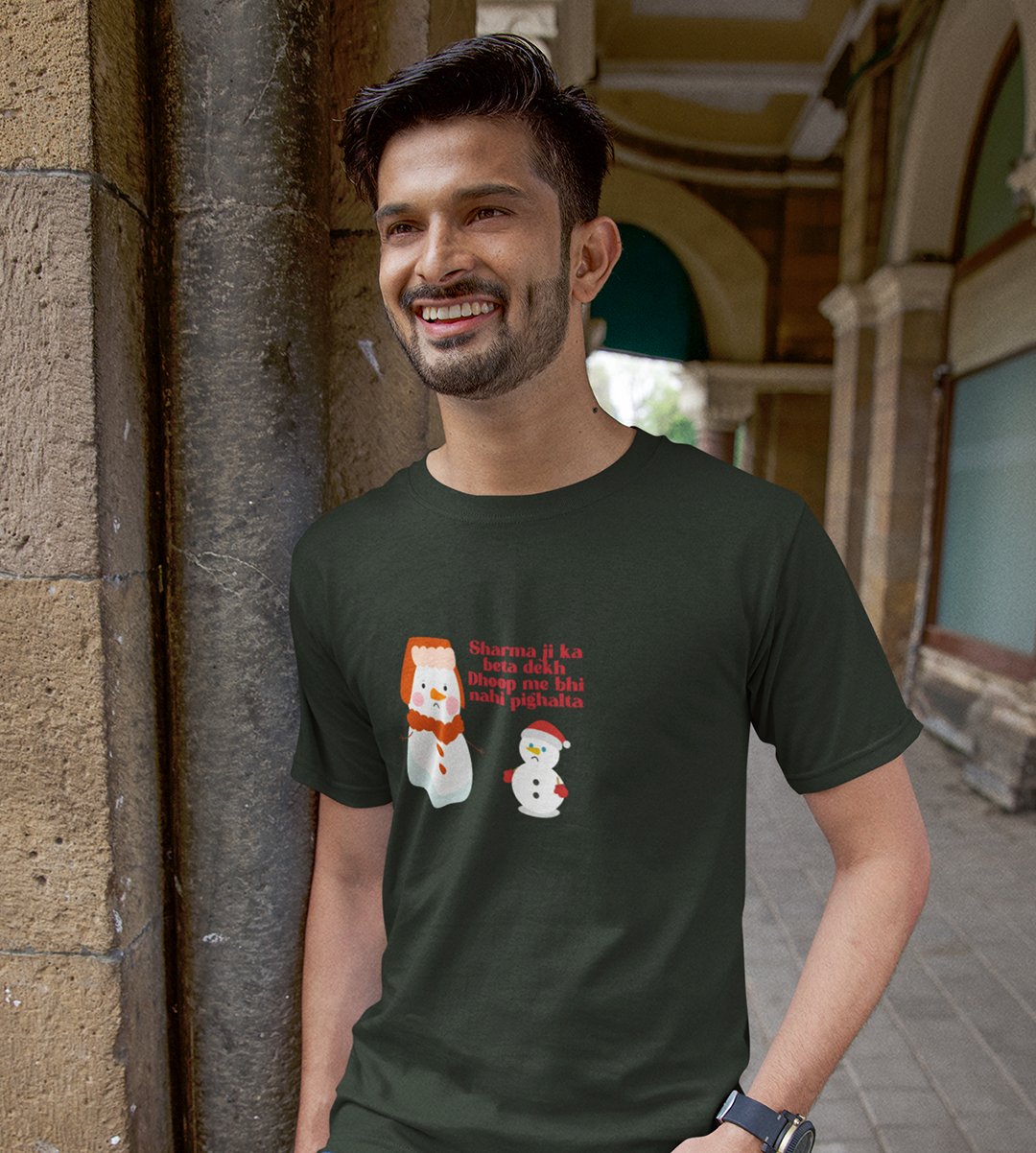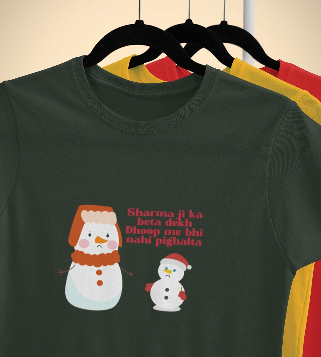 Snowman Sharmaji : Beautifully Crafted T-shirt (Green) Perfect Gift For Secret Santa