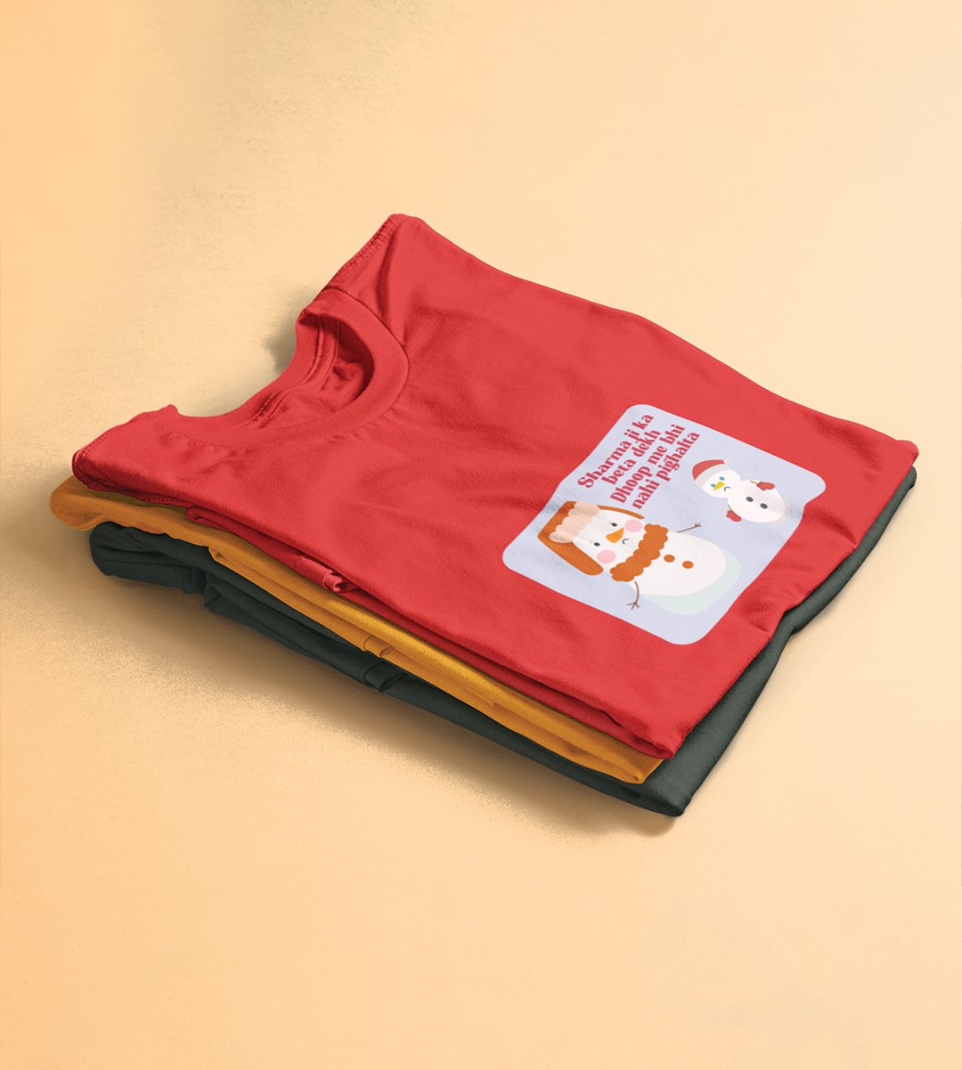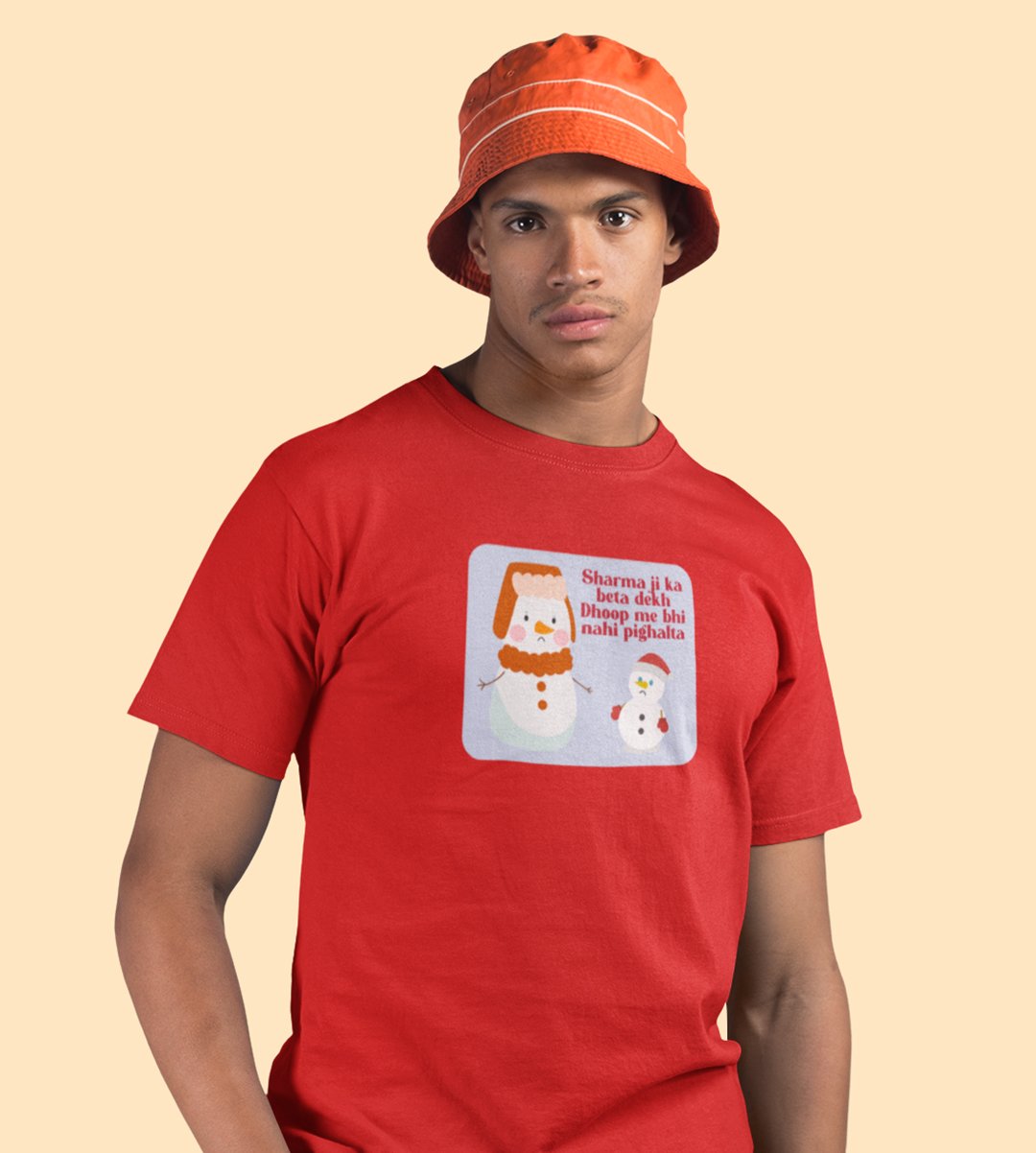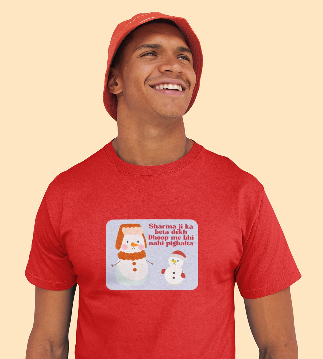 Snowman Sharmaji : Beautifully Crafted T-shirt (Red) Perfect Gift For Secret Santa