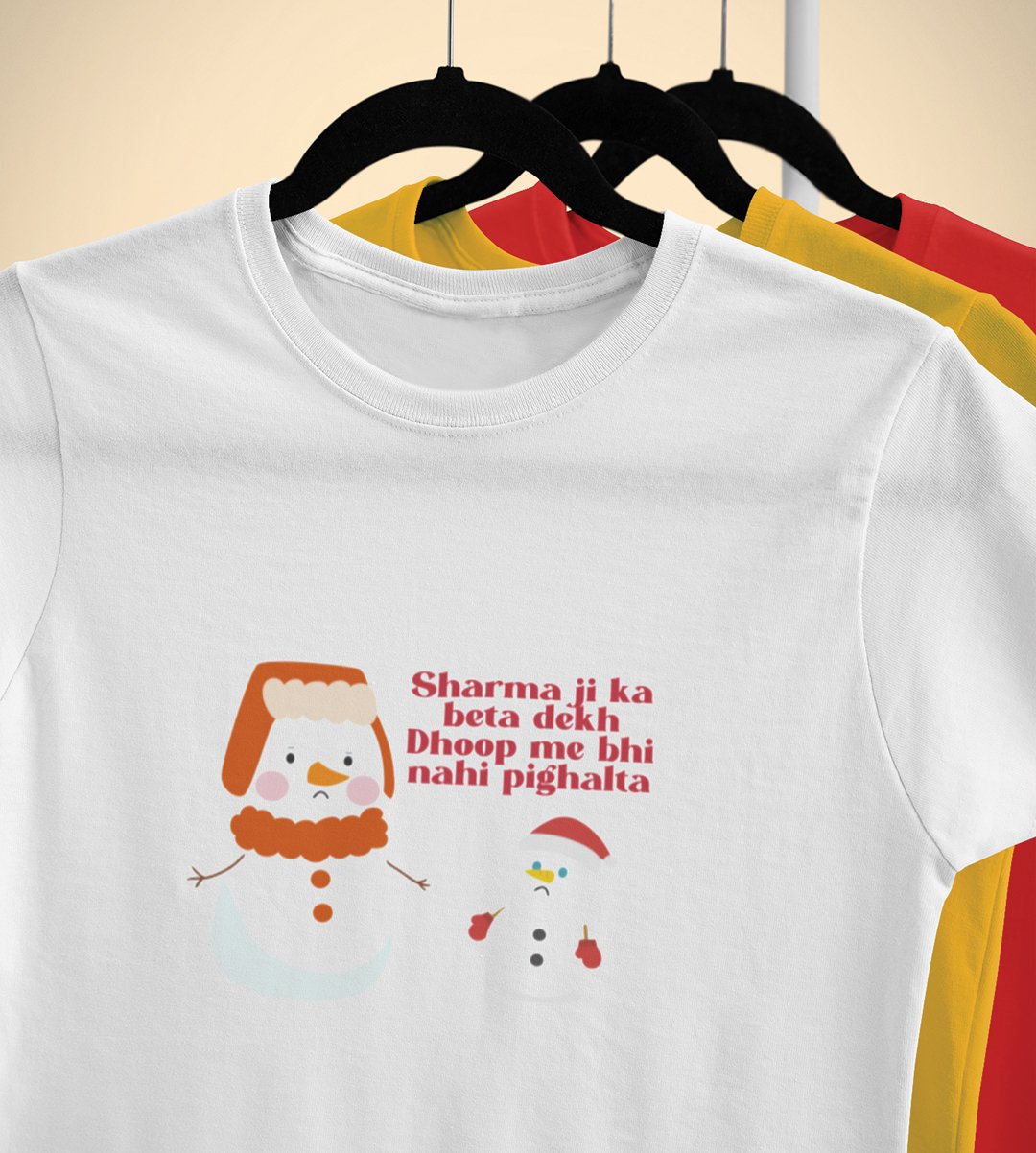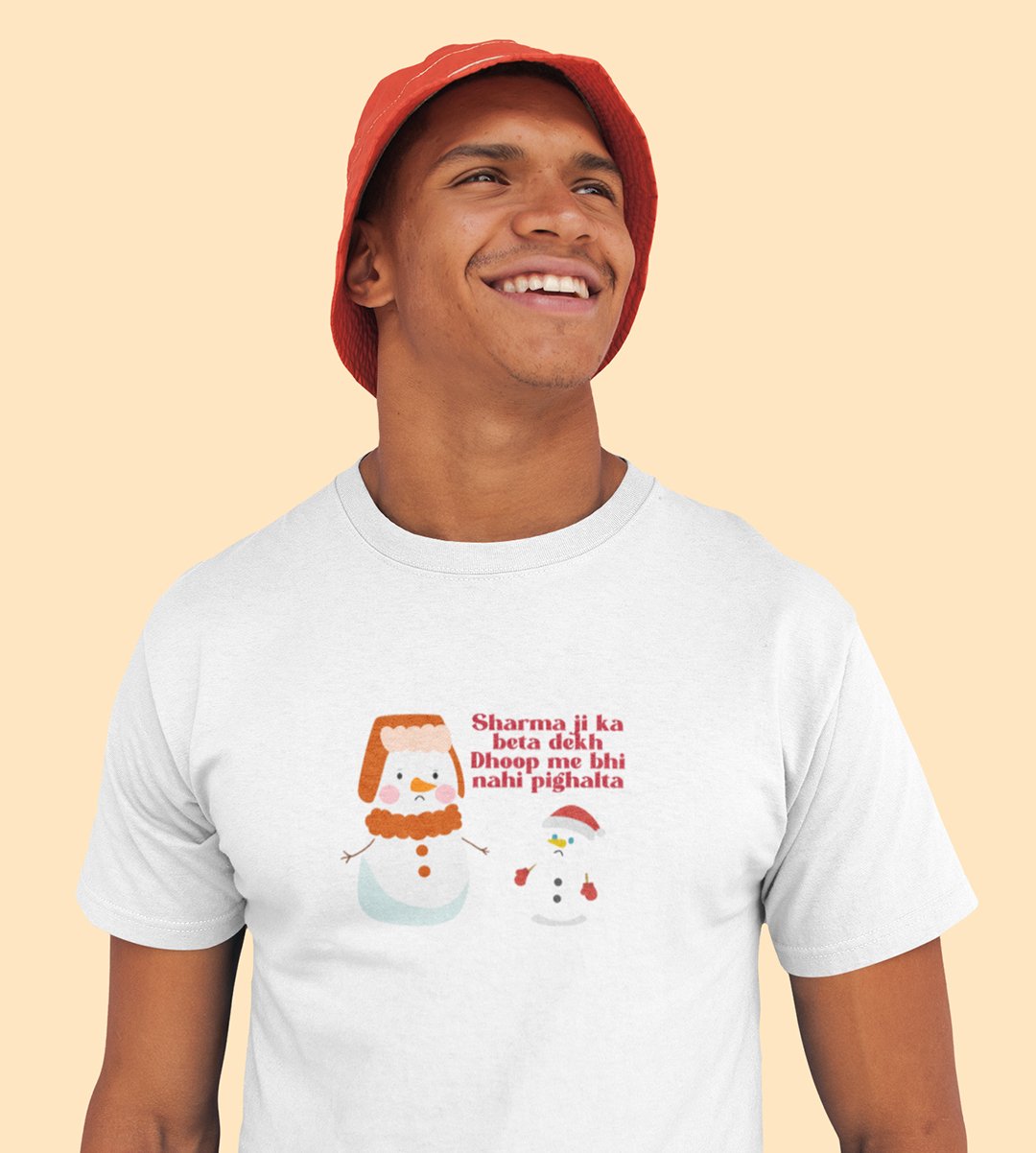 Snowman Sharmaji : Beautifully Crafted T-shirt (White) Perfect Gift For Secret Santa