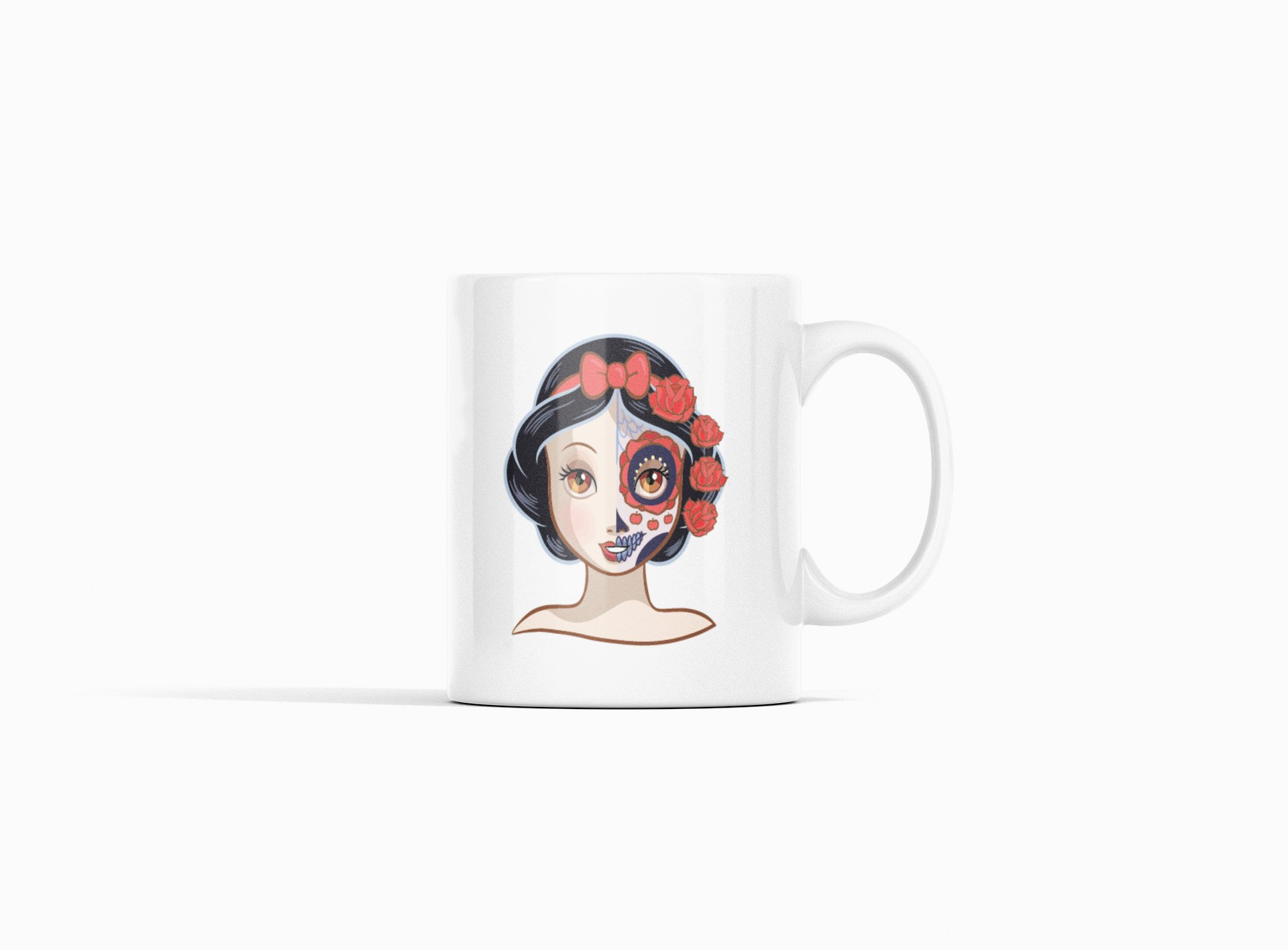 Snowwhite face - animation themed printed ceramic white coffee and tea mugs/ cups for animation lovers