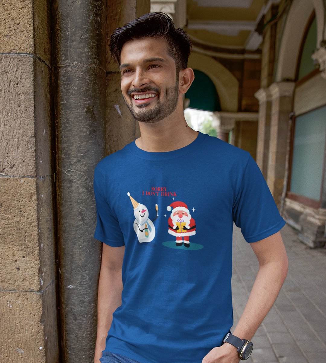 Sober Santa: Funniest Printed T-shirt (Blue) Best Gift For Boys Girls