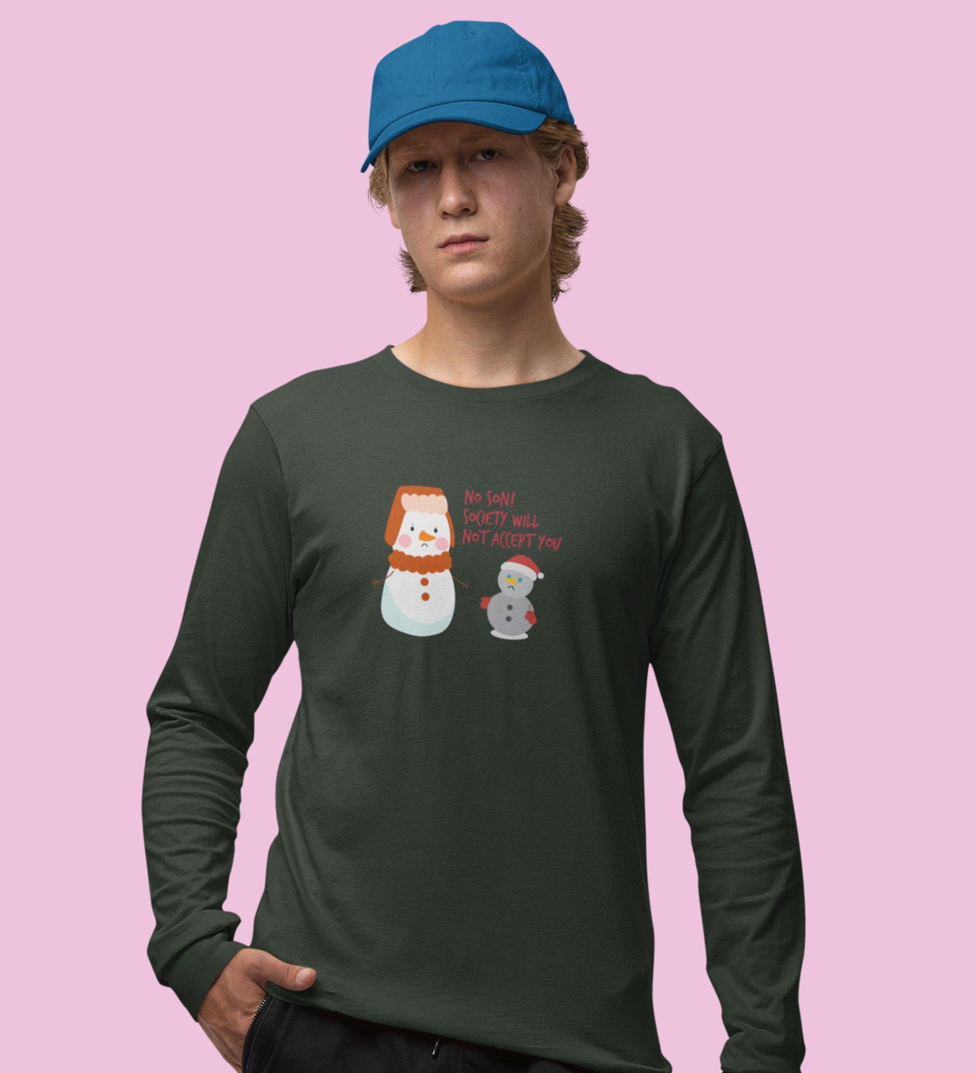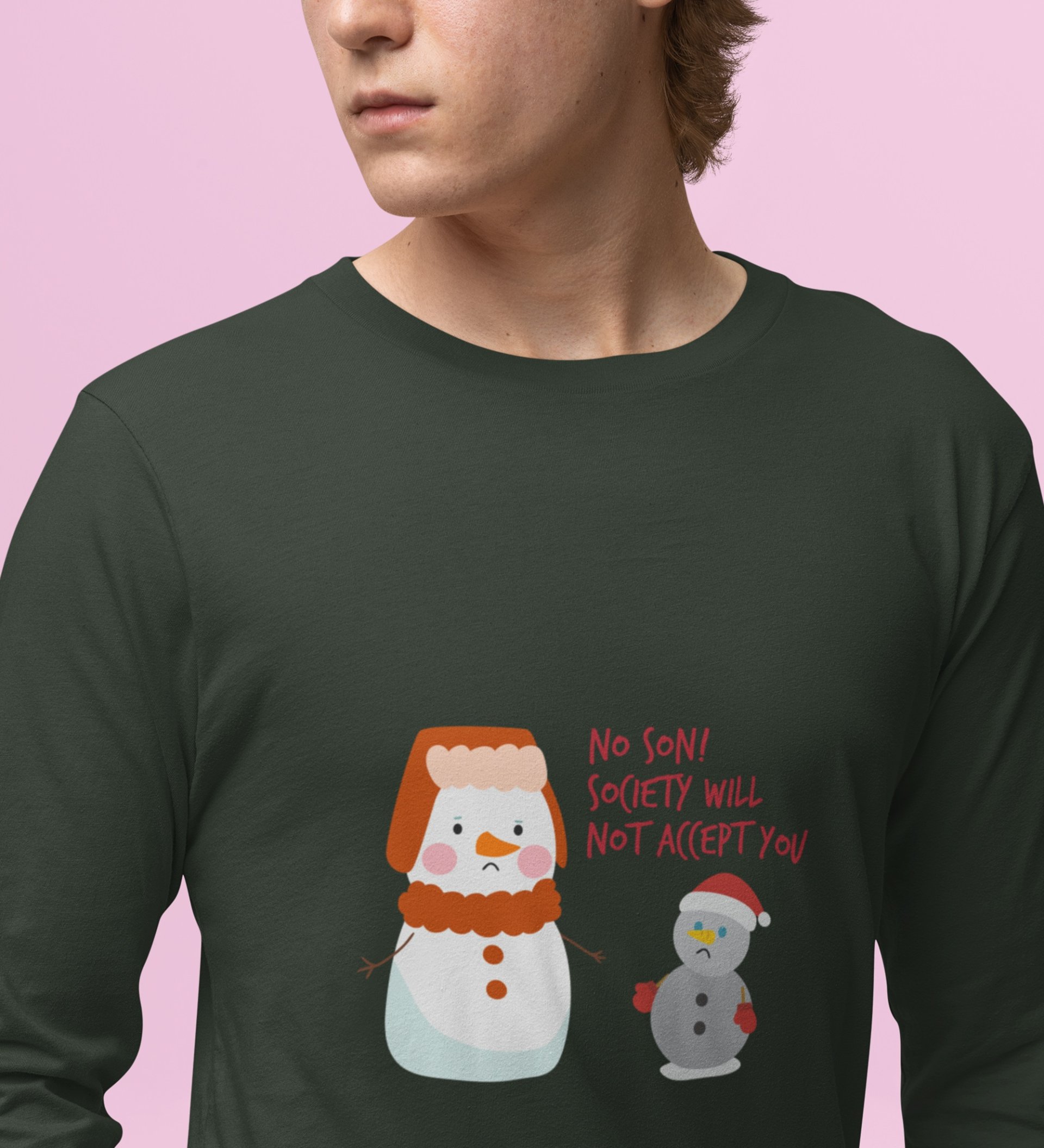 Society Against Santa: Unique DesignedFull Sleeve T-shirt Green Best Gifts For Secret Santa