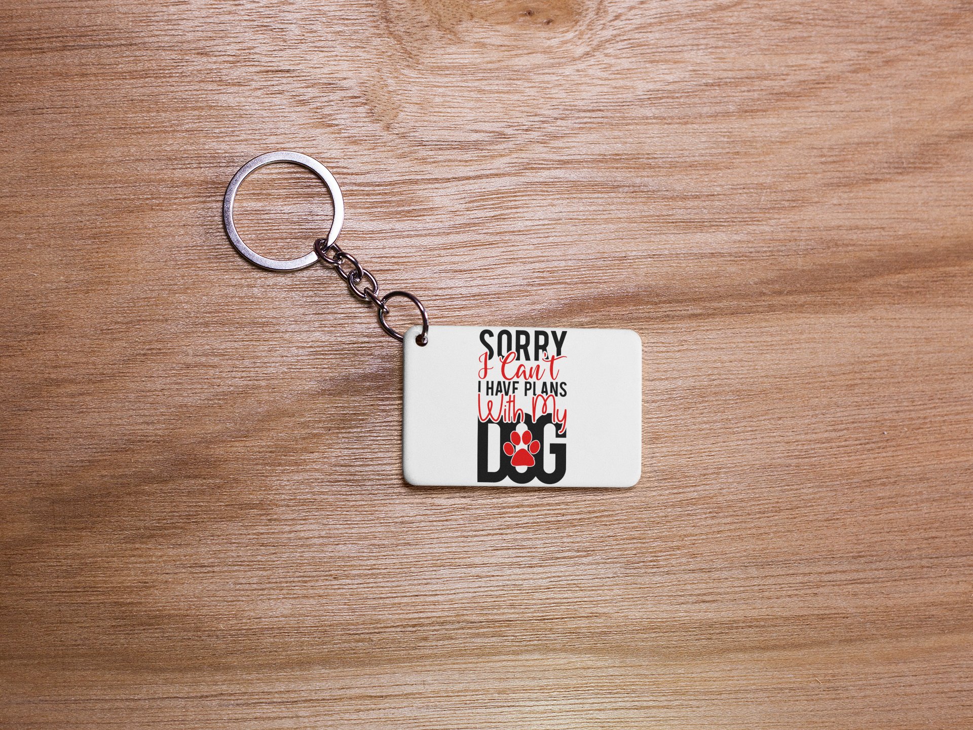 Sorry I Can't, I Have Plans With My Dog (BG Black And Red Text )-White -Designable Keychains(Pack Of 2)