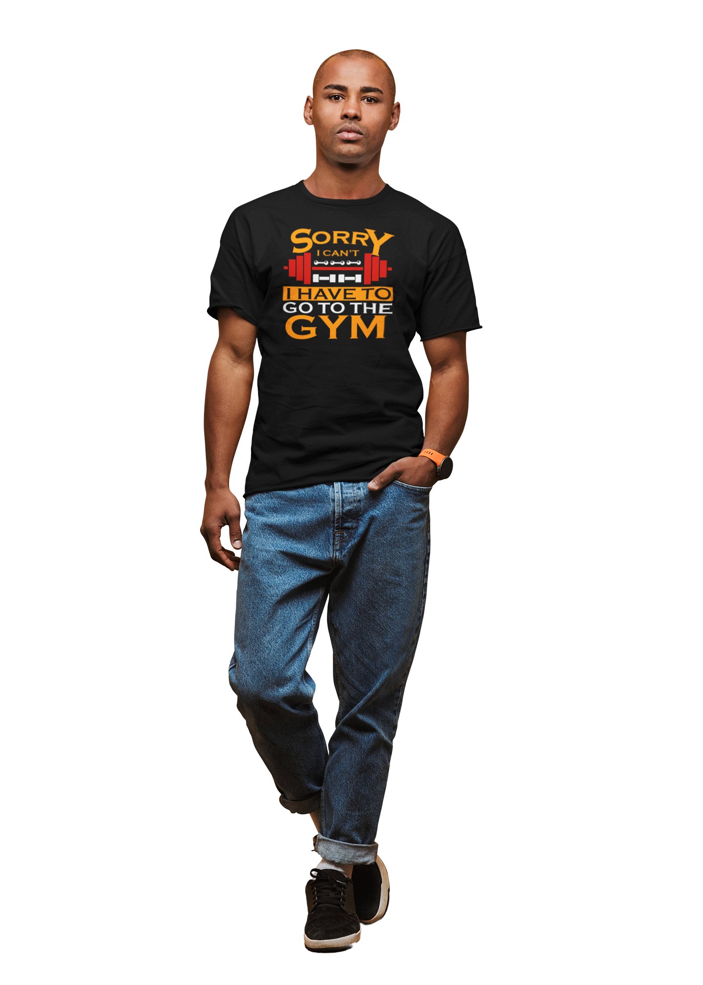 Sorry I Can't, I Have To Go To The Gym, (BG Yellow and Red), Round Neck Gym Tshirt (White Tshirt) - Clothes for Gym Lovers - Suitable for Gym Going Person - Foremost Gifting Material for Your Friends and Close Ones