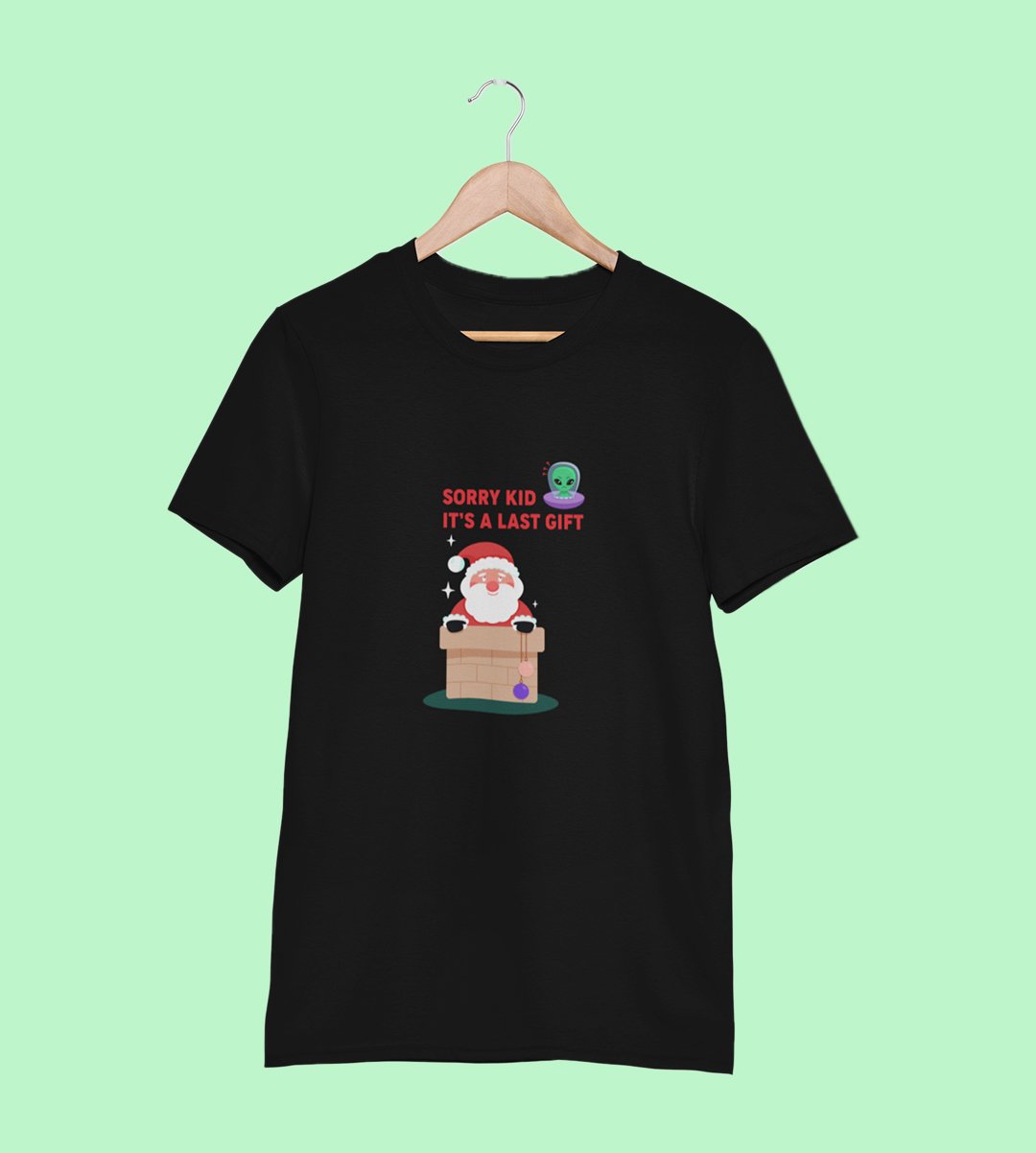 Sorry Kids Last Gift : Funny Printed T-shirt (Black) Most Liked Gift For Secret Santa