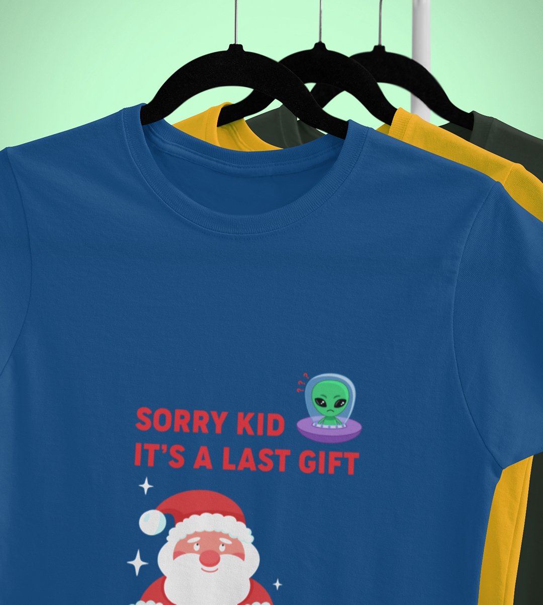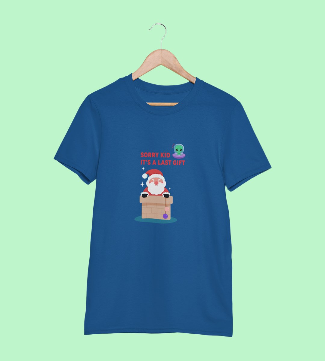 Sorry Kids Last Gift : Funny Printed T-shirt (Blue) Most Liked Gift For Secret Santa