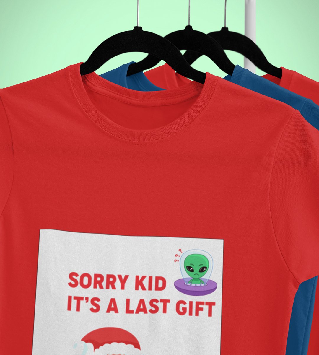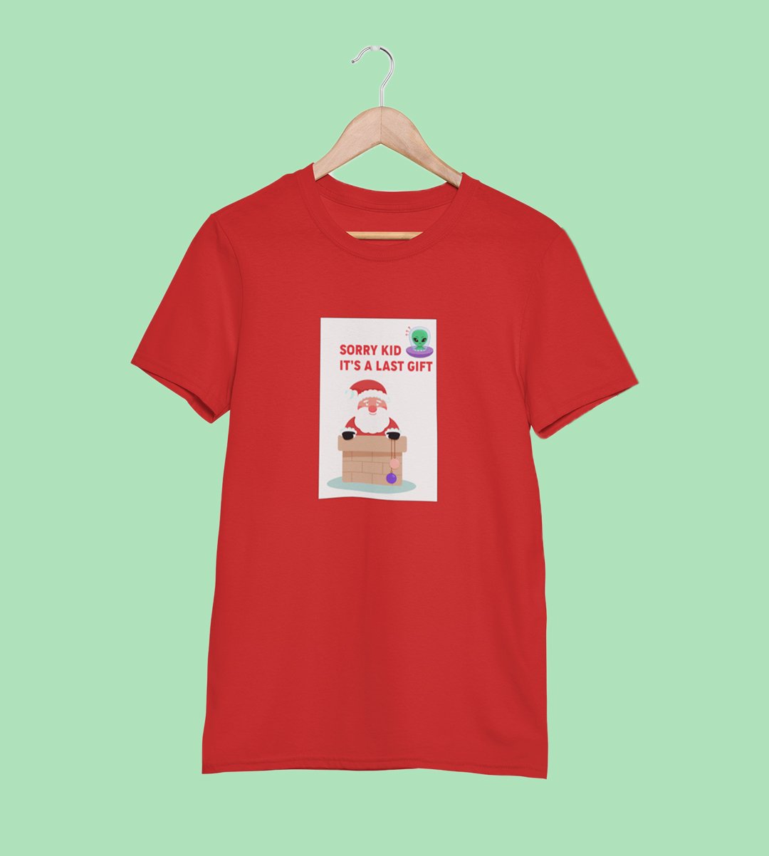 Sorry Kids Last Gift : Funny Printed T-shirt (Red) Most Liked Gift For Secret Santa
