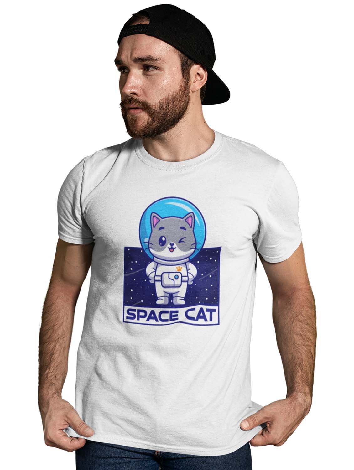Space Cat - White printed cotton t-shirt - Comfortable and Stylish Tshirt
