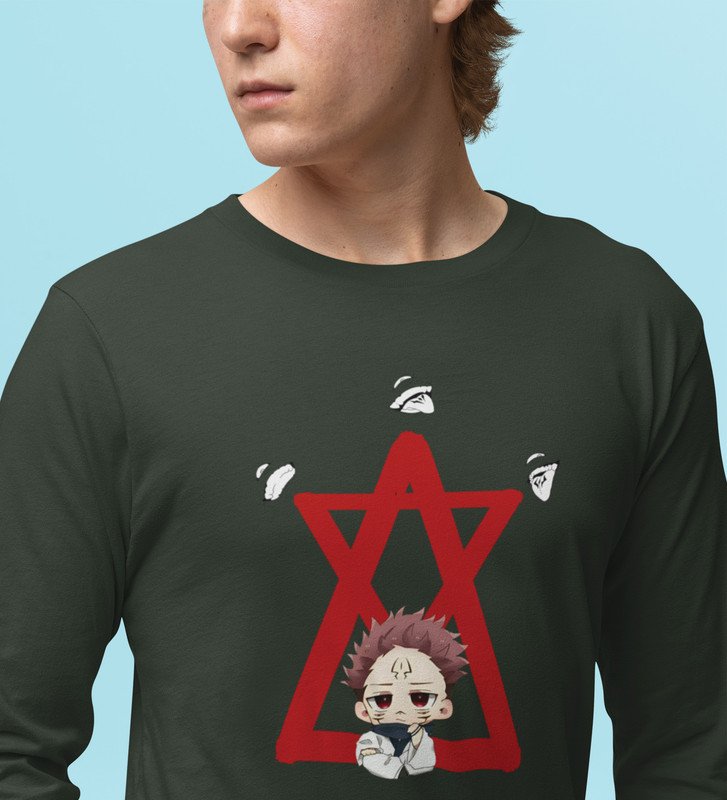 Spiritual Itadori Cotton Green Printed Full Sleeves Tshirt For Mens and Boys