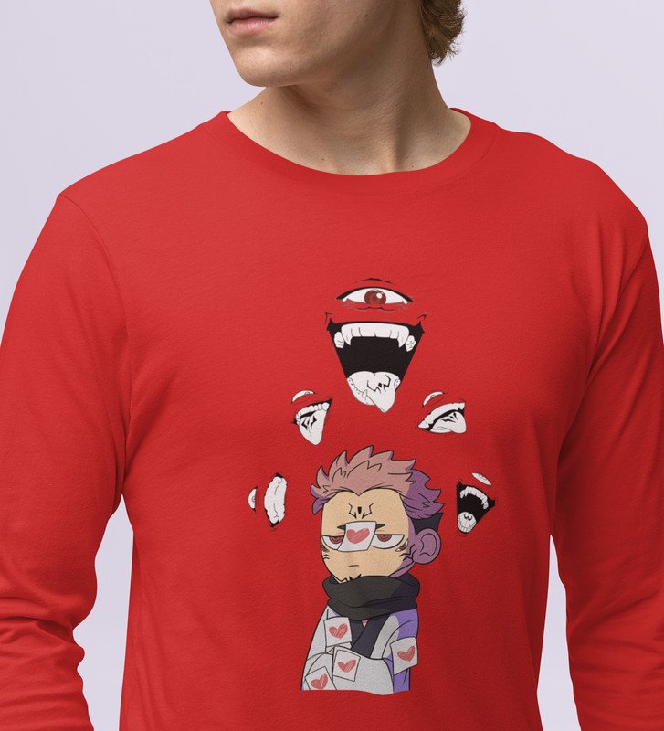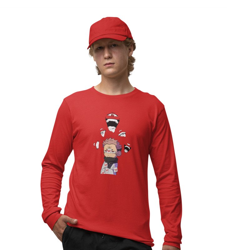 Spiritual Itadori Cotton Red Printed Full Sleeves Tshirt For Mens and Boys