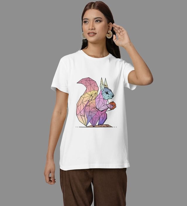 Squirrel of Pastel Realms: Graphic Printed White T-Shirt
