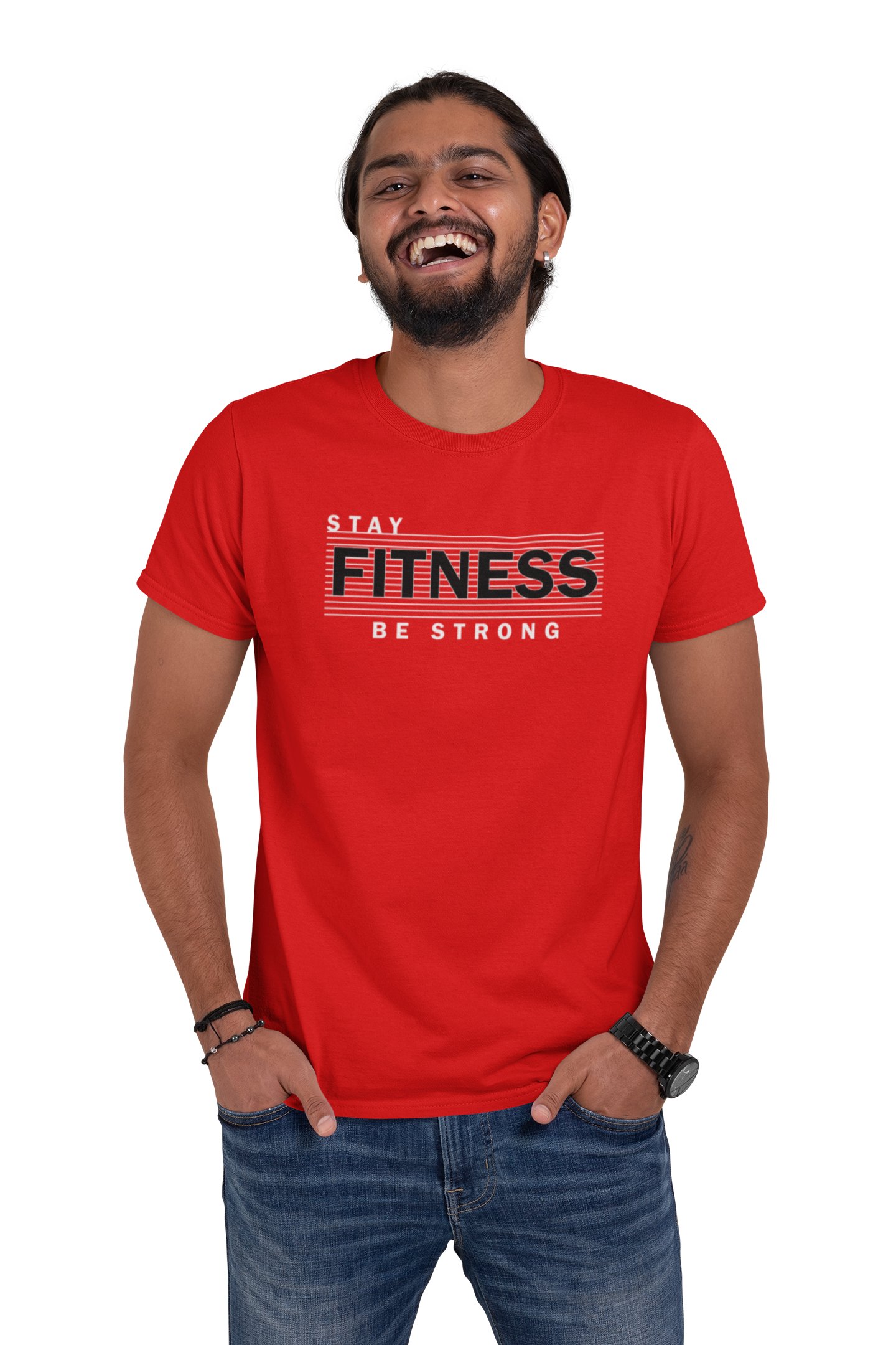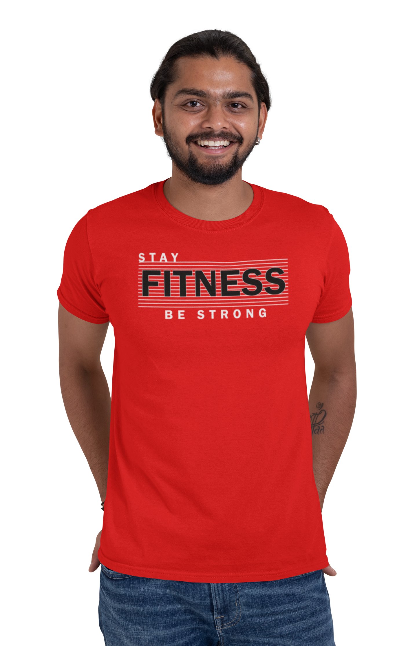 Stay Fitness, Be Strong, Round Neck Gym Tshirt (Red Tshirt) - Foremost Gifting Material for Your Friends and Close Ones