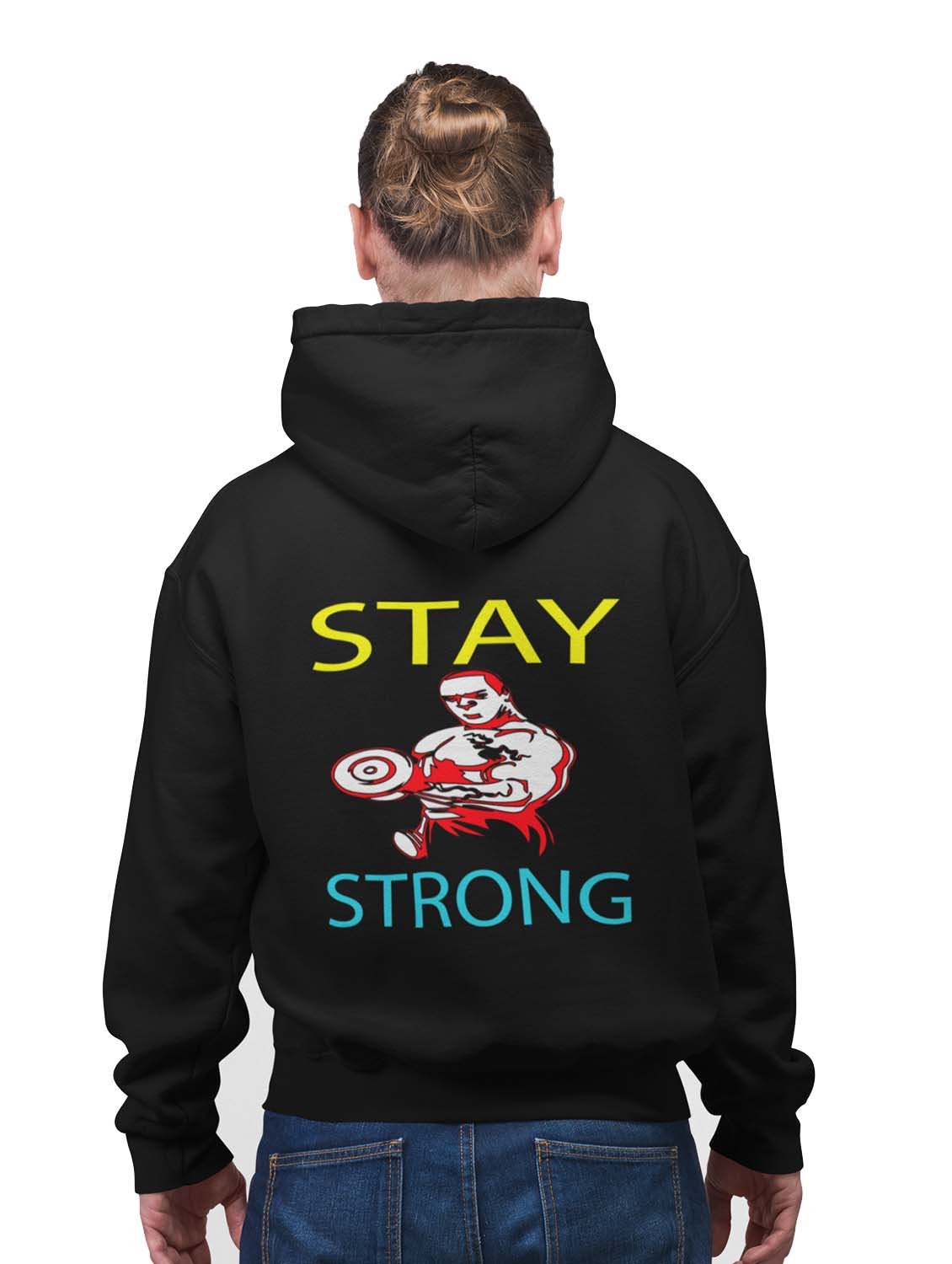 Stay Strong ( Text In Yellow & Blue) printed artswear black hoodies for winter casual wear specially for Men