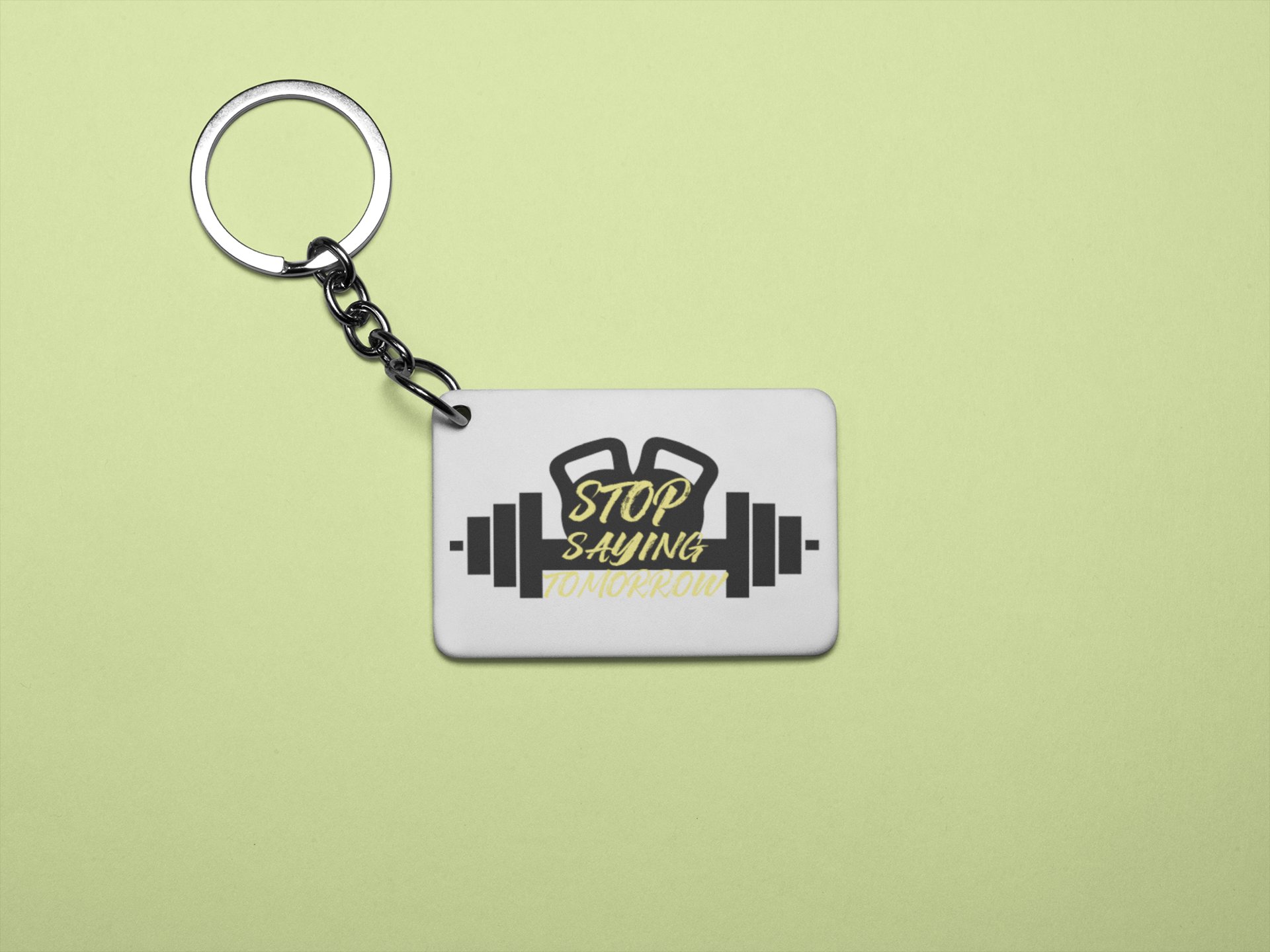 Stop saying Tomorrow, In Bar - Printed Keychains for gym lovers(Pack of 2)