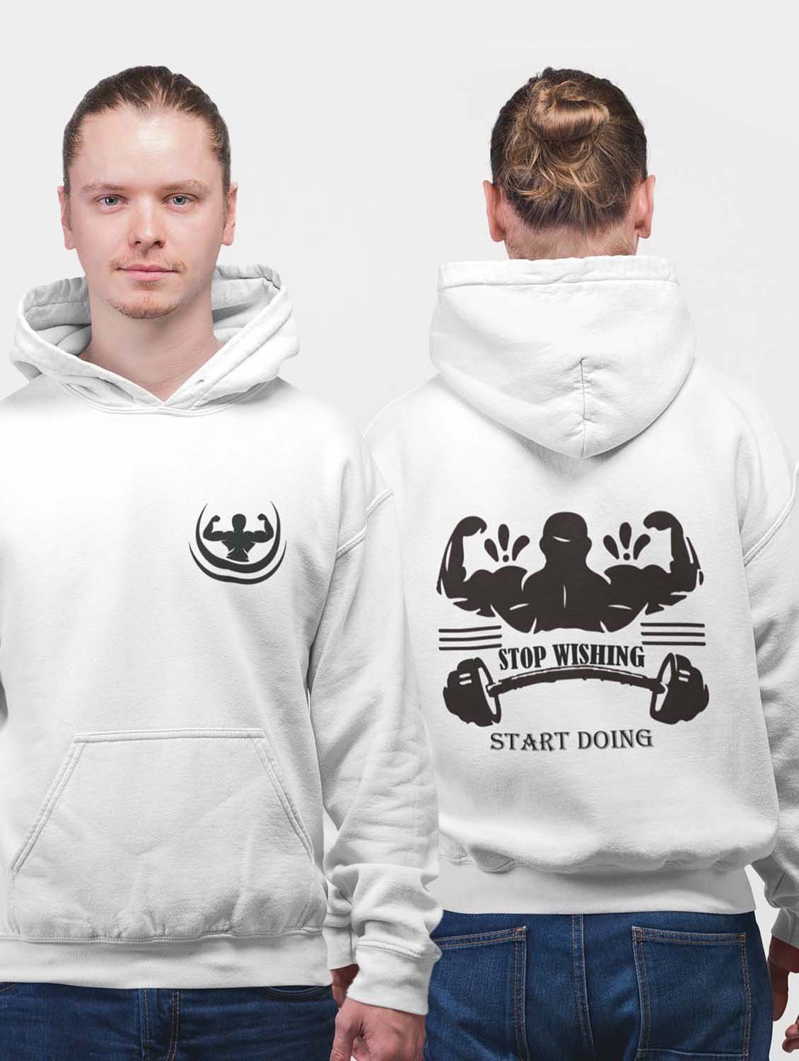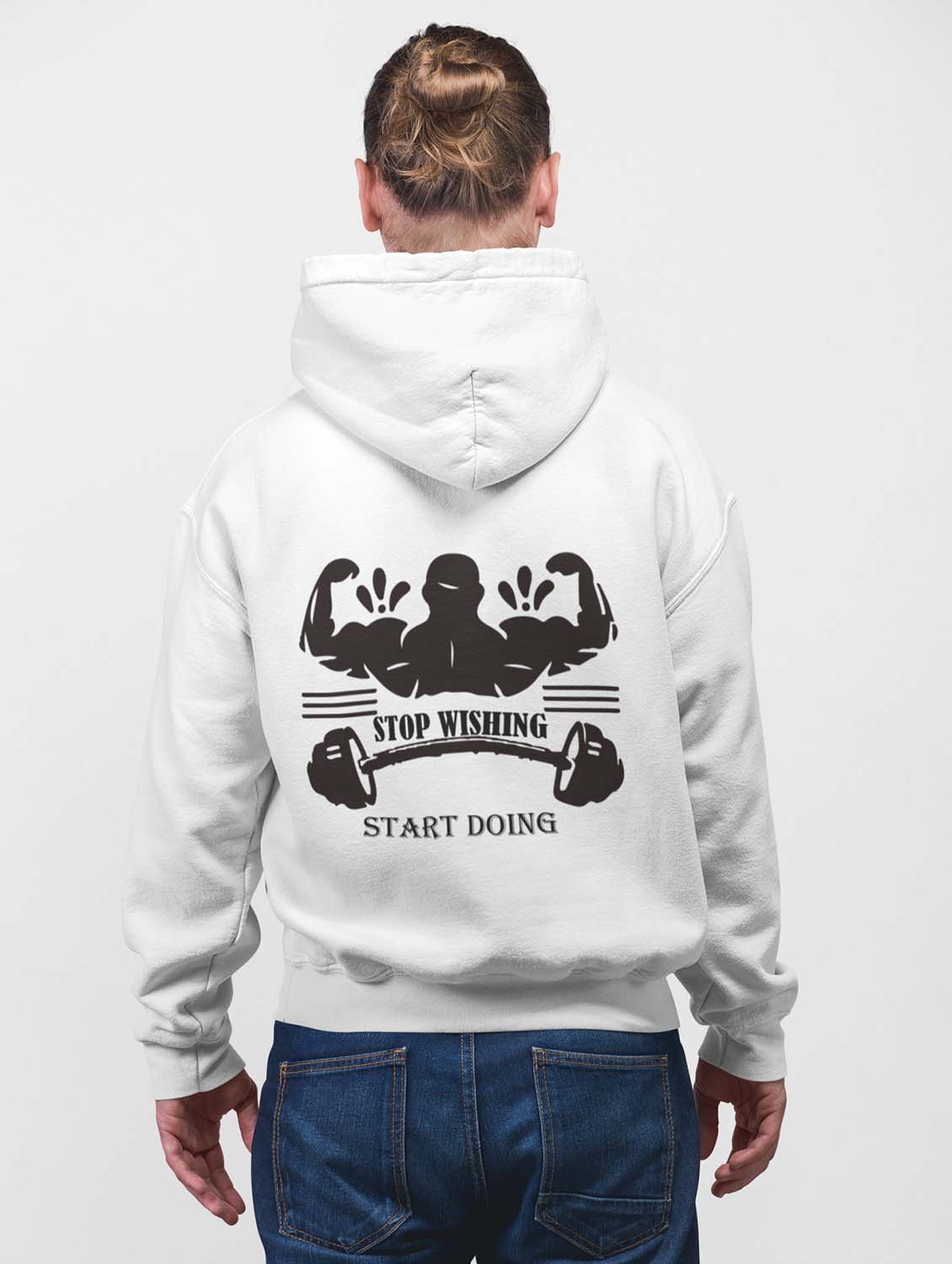 Stop Wishing Start Doing Black Text printed artswear white hoodies for winter casual wear specially for Men