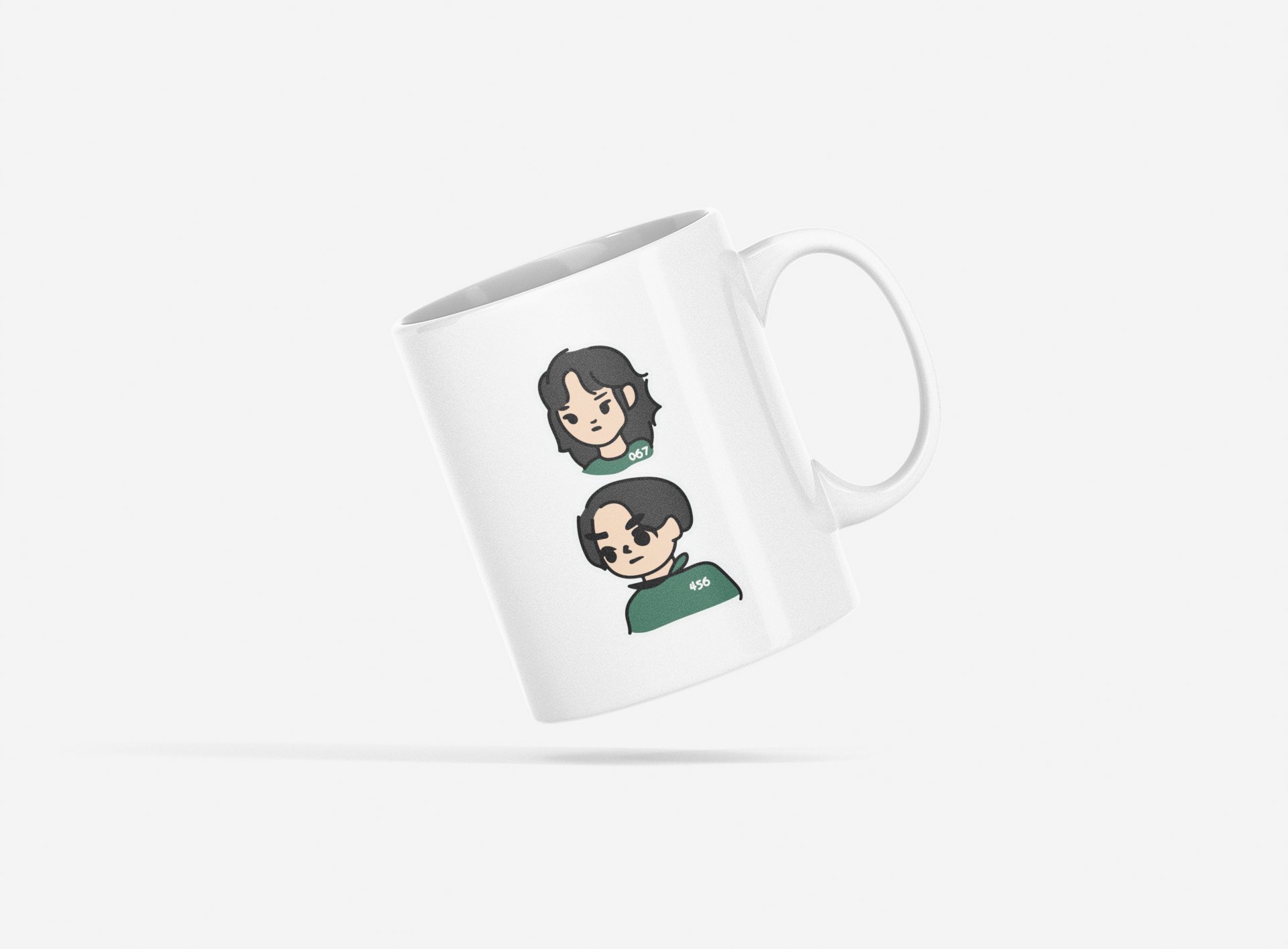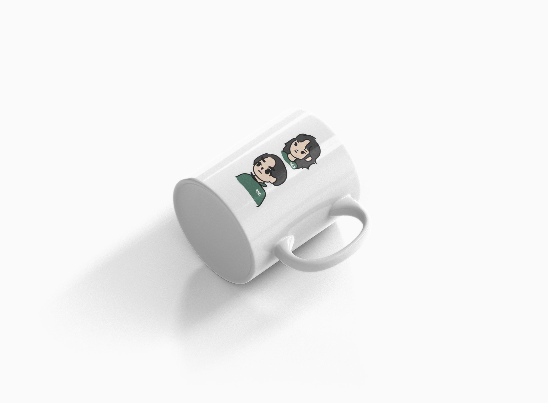 Straight hair boy, curly hair girl - animation themed printed ceramic white coffee and tea mugs/ cups for animation lovers