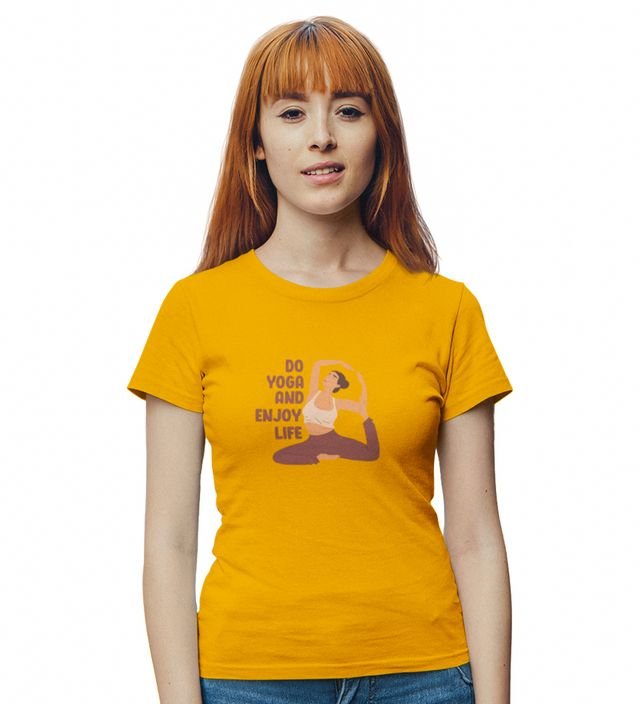 Stretch Into Happiness Yellow Round Neck Cotton Half Sleeved Women T-Shirt with Printed Graphics