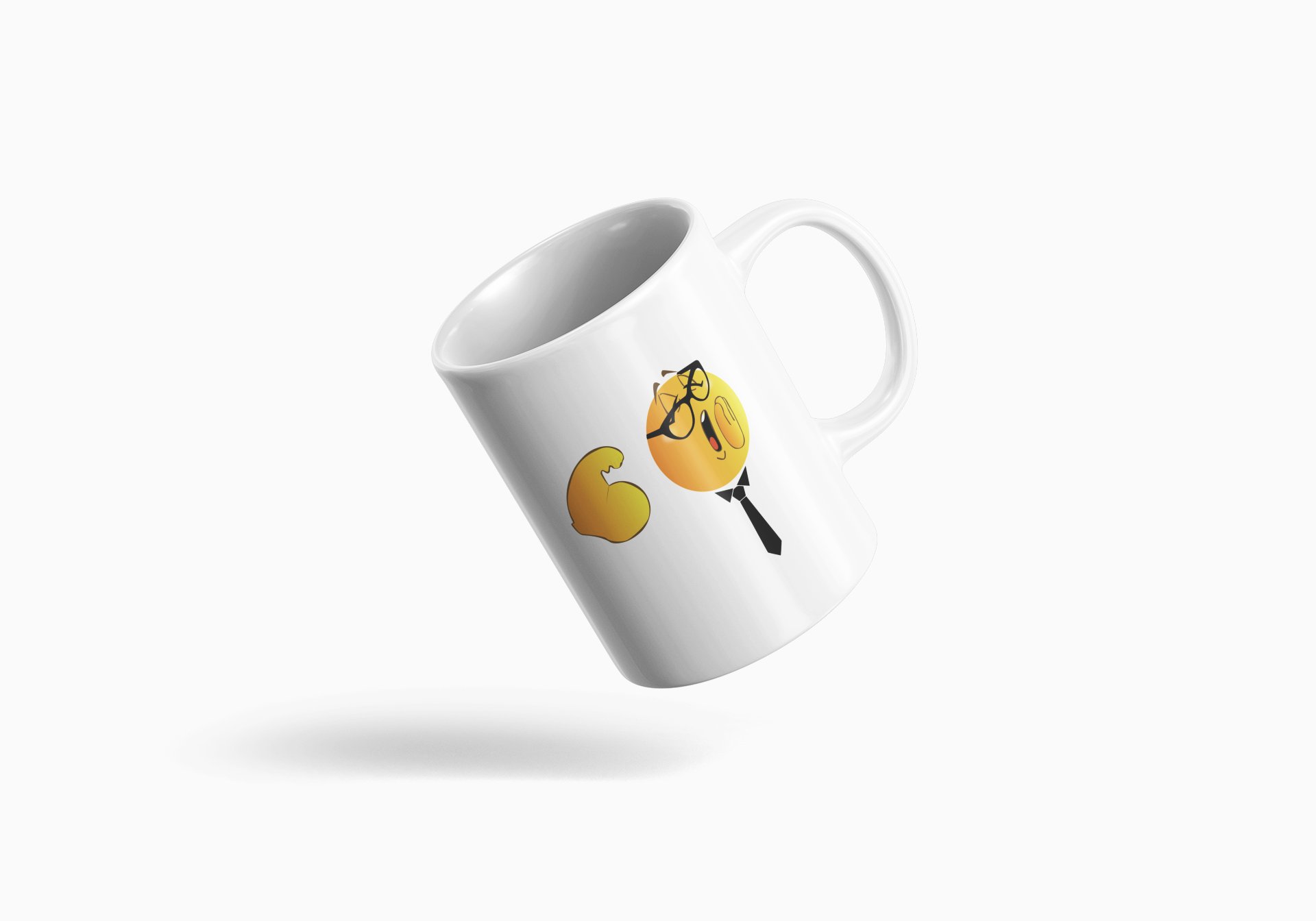 Strong Man Emoji- emoji printed ceramic white coffee and tea mugs/ cups for emoji lover people