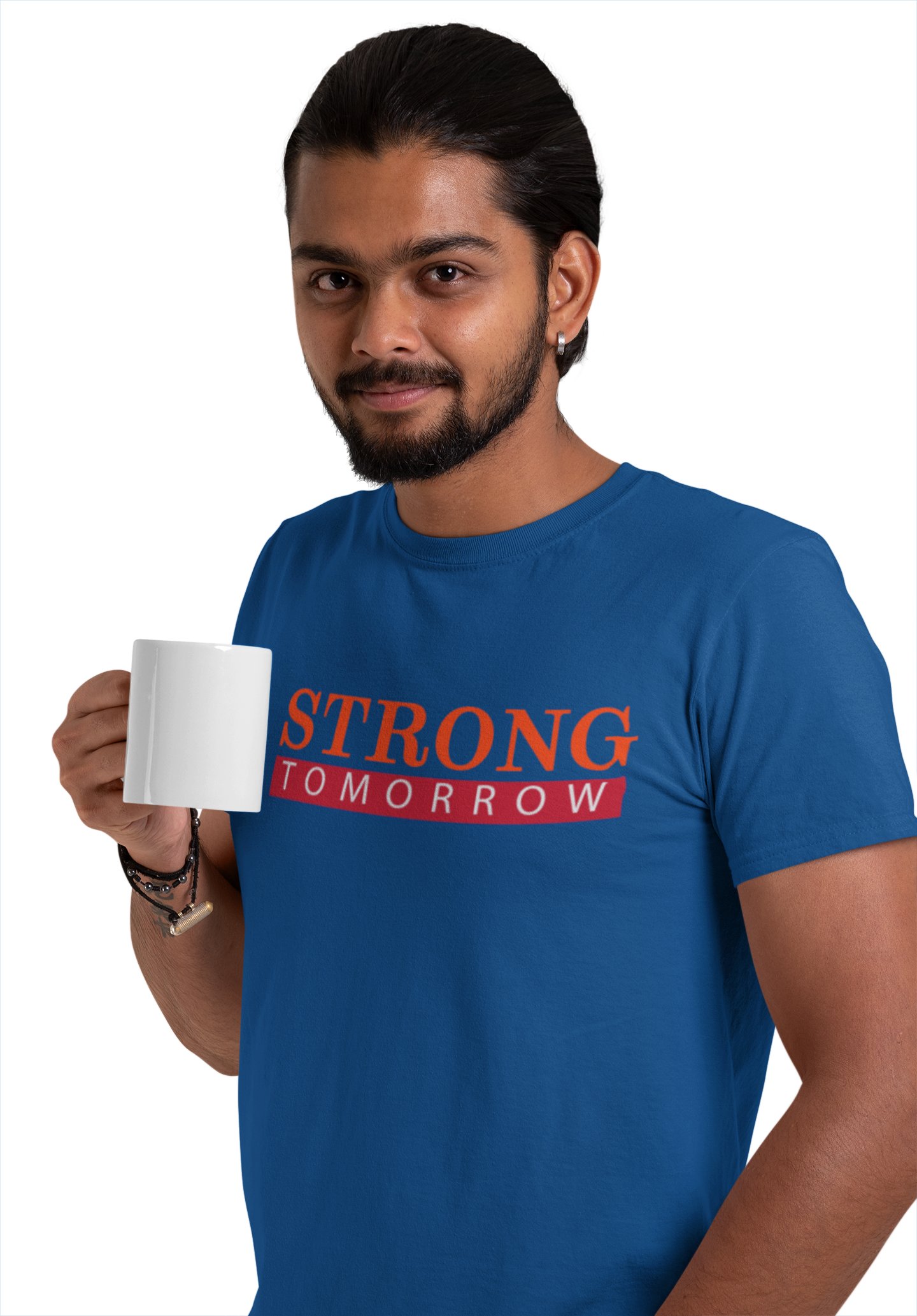 Strong Tomorrow, Round Neck Gym Tshirt (Blue Tshirt) - Clothes for Gym Lovers - Suitable for Gym Going Person - Foremost Gifting Material for Your Friends and Close Ones