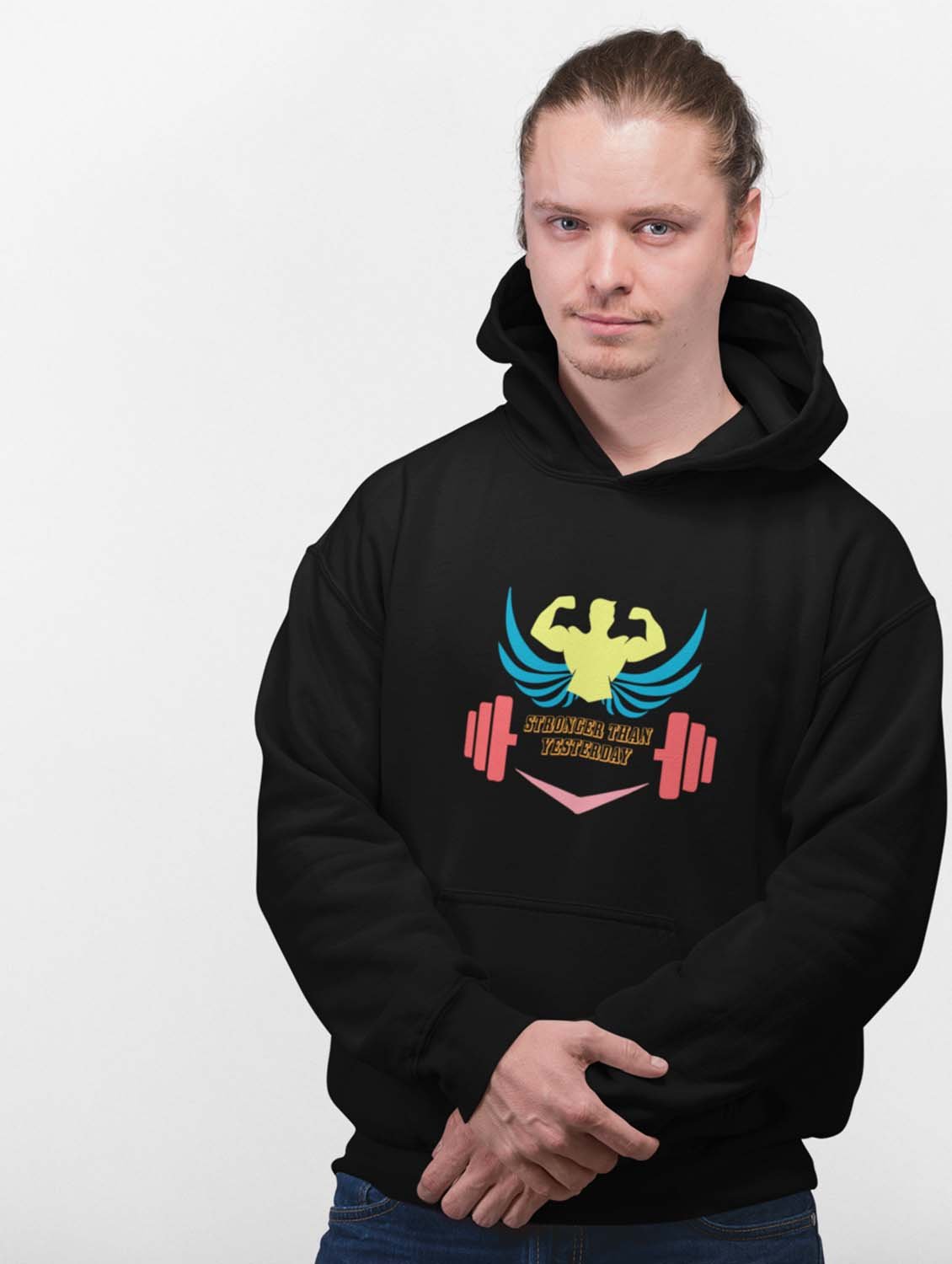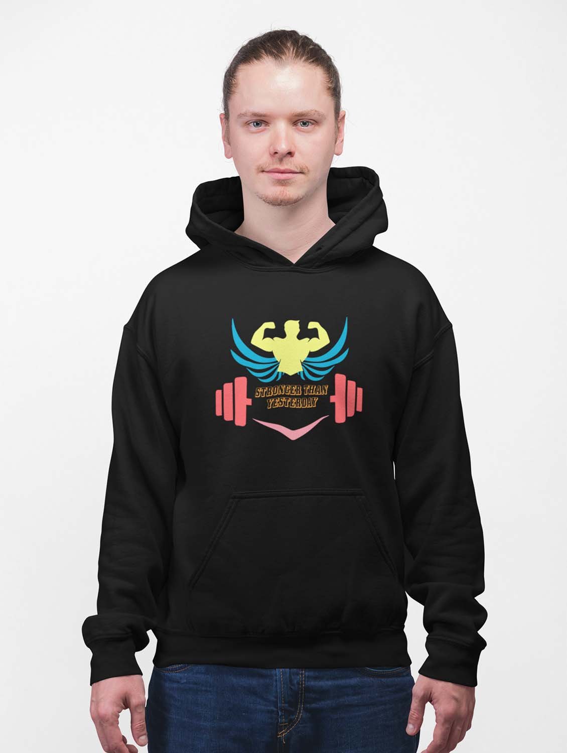 Stronger Than Yesterday printed artswear black hoodies for winter casual wear specially for Men