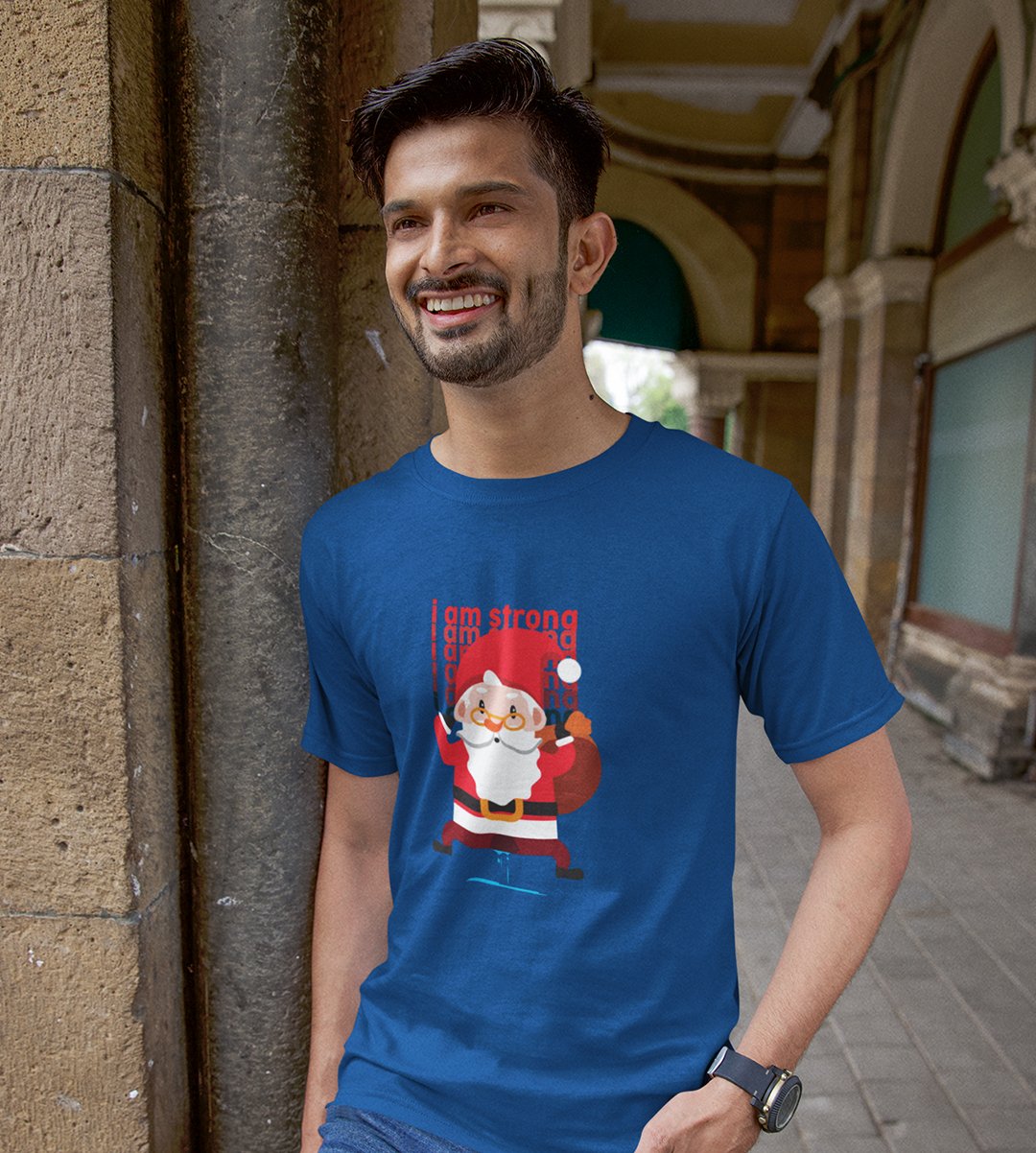 Strongest Santa: Unique Printed T-shirt (Blue) Best Gift For Christmas Eve