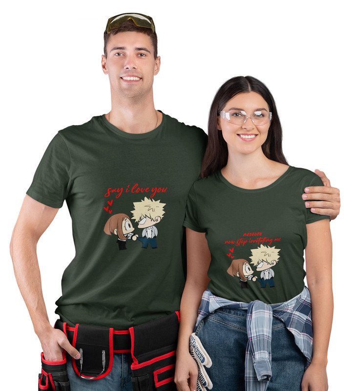 Stubborn Girlfriend Cute Printed (green) T-shirts For Couples