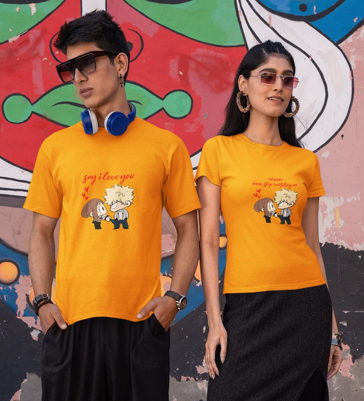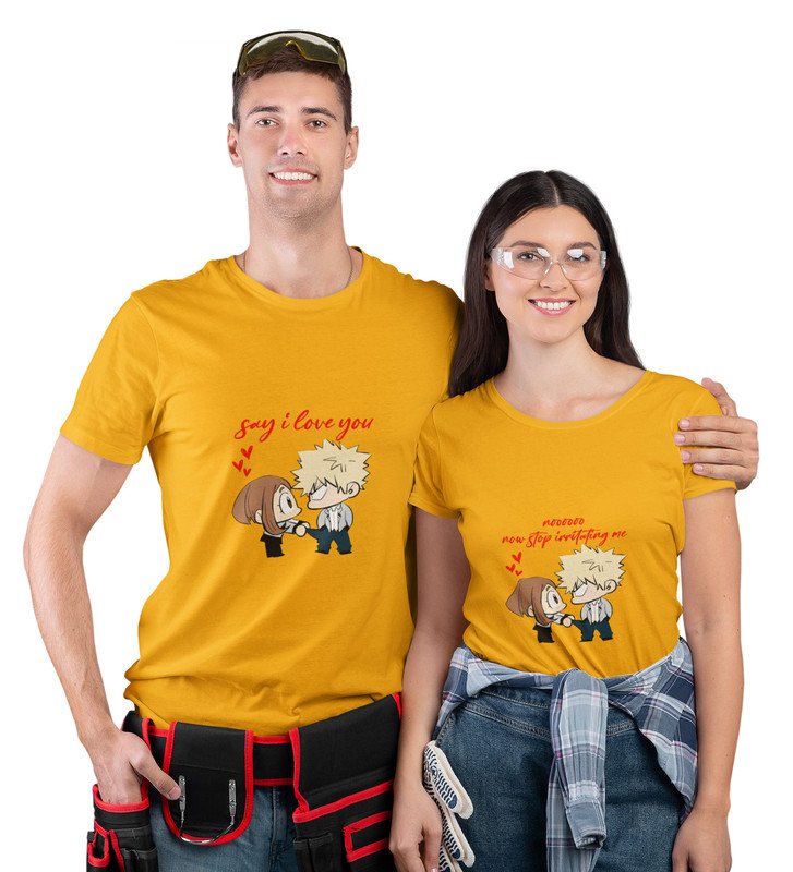 Stubborn Girlfriend Cute Printed (Yellow) T-shirts For Couples