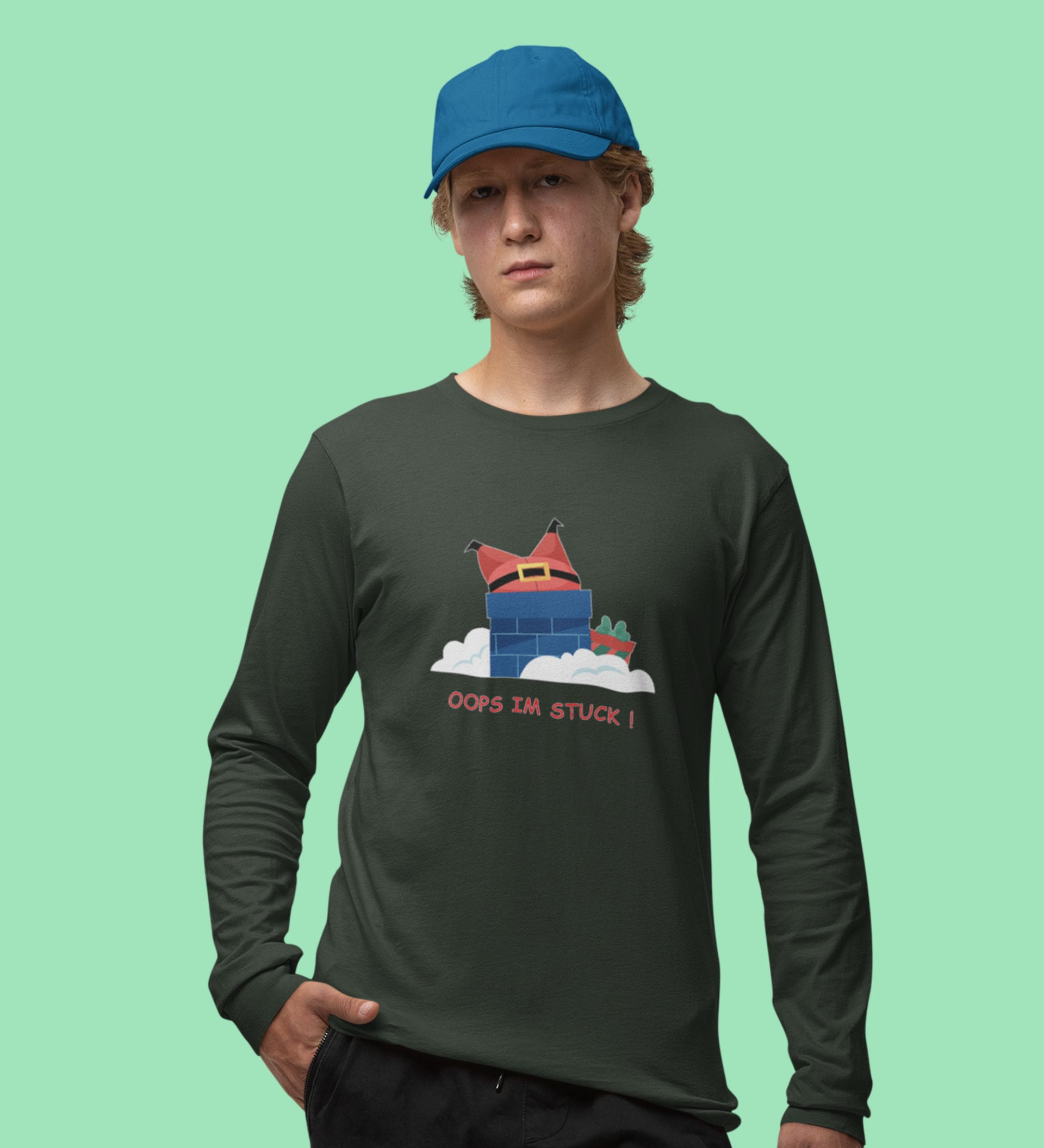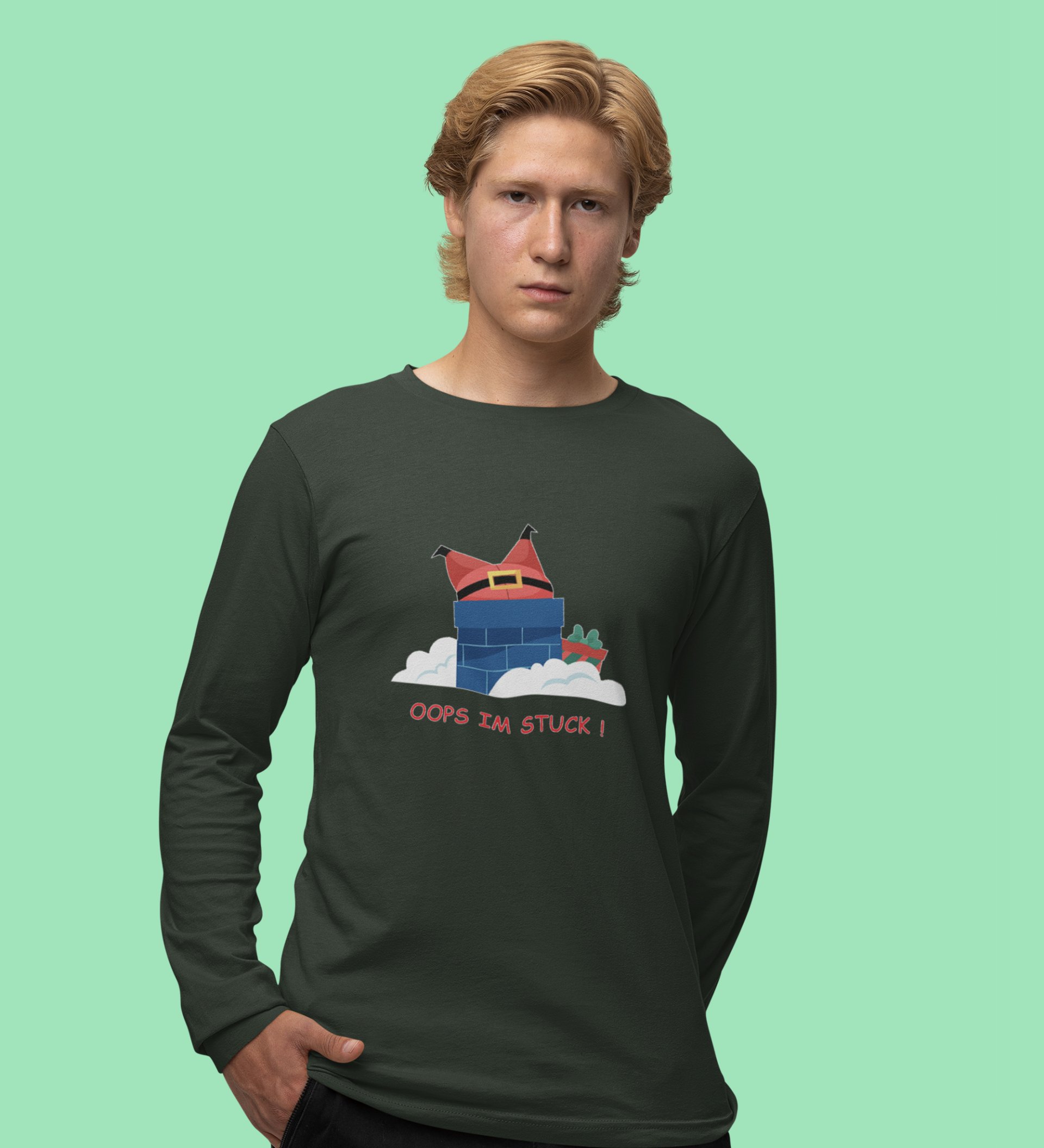 Stuck Santa In Chimney: Funniest DesignedFull Sleeve T-shirt: Cute Gift For Secret Santa
