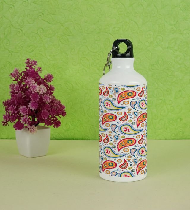 Stylish Oriental Indian Paisley Seamless Pattern Print Printed Aluminium Water Bottle 600ml