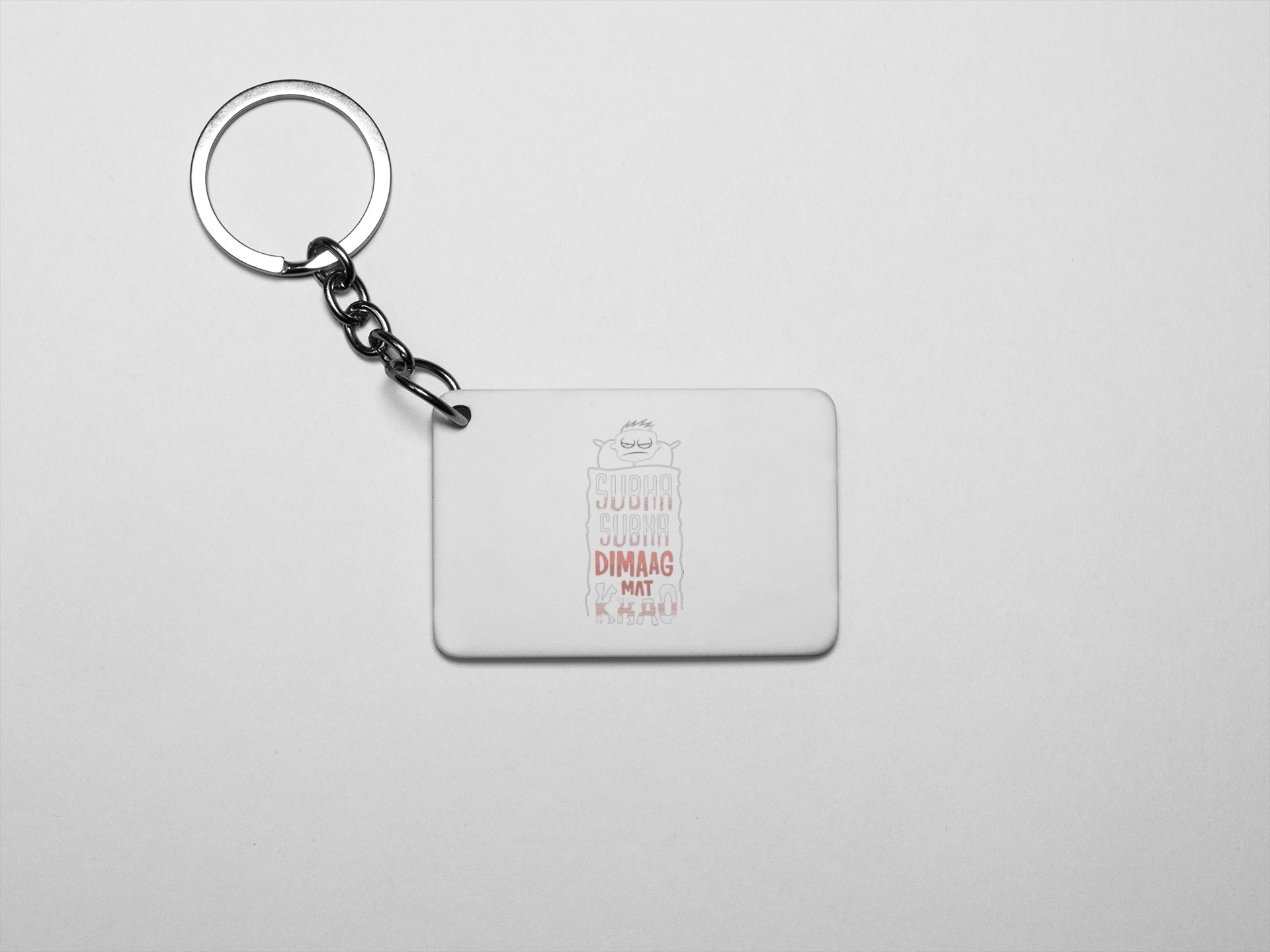 Subha Subha Dimag Mat Khao- acryllic printed white keychains/ keyrings for bollywood lover people(Pack Of 2)