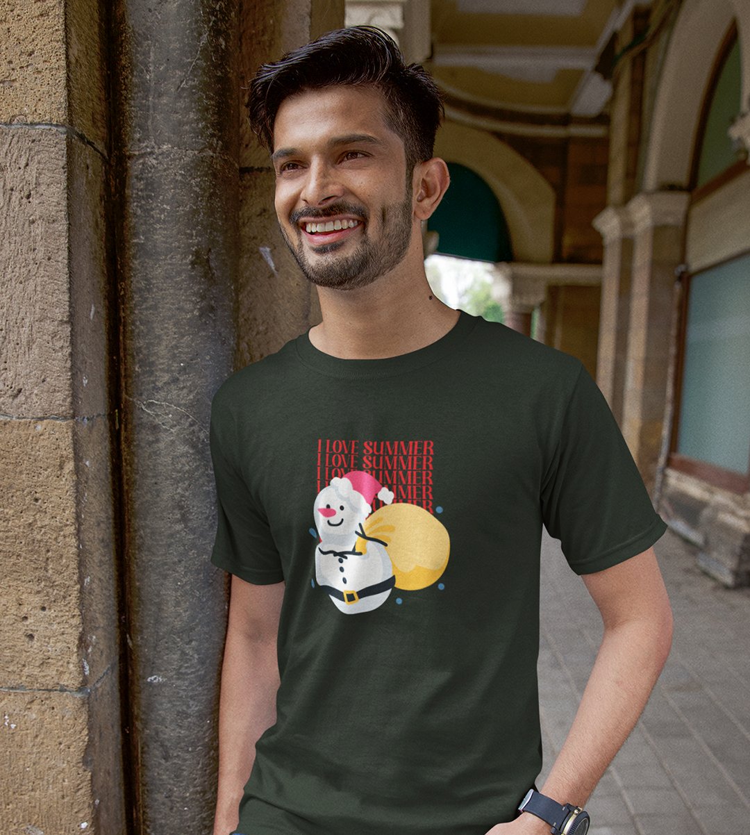 Summer Lover Snowman : Best Printed T-shirt (Green) Perfect Gift For Secret Santa For Boys Girls