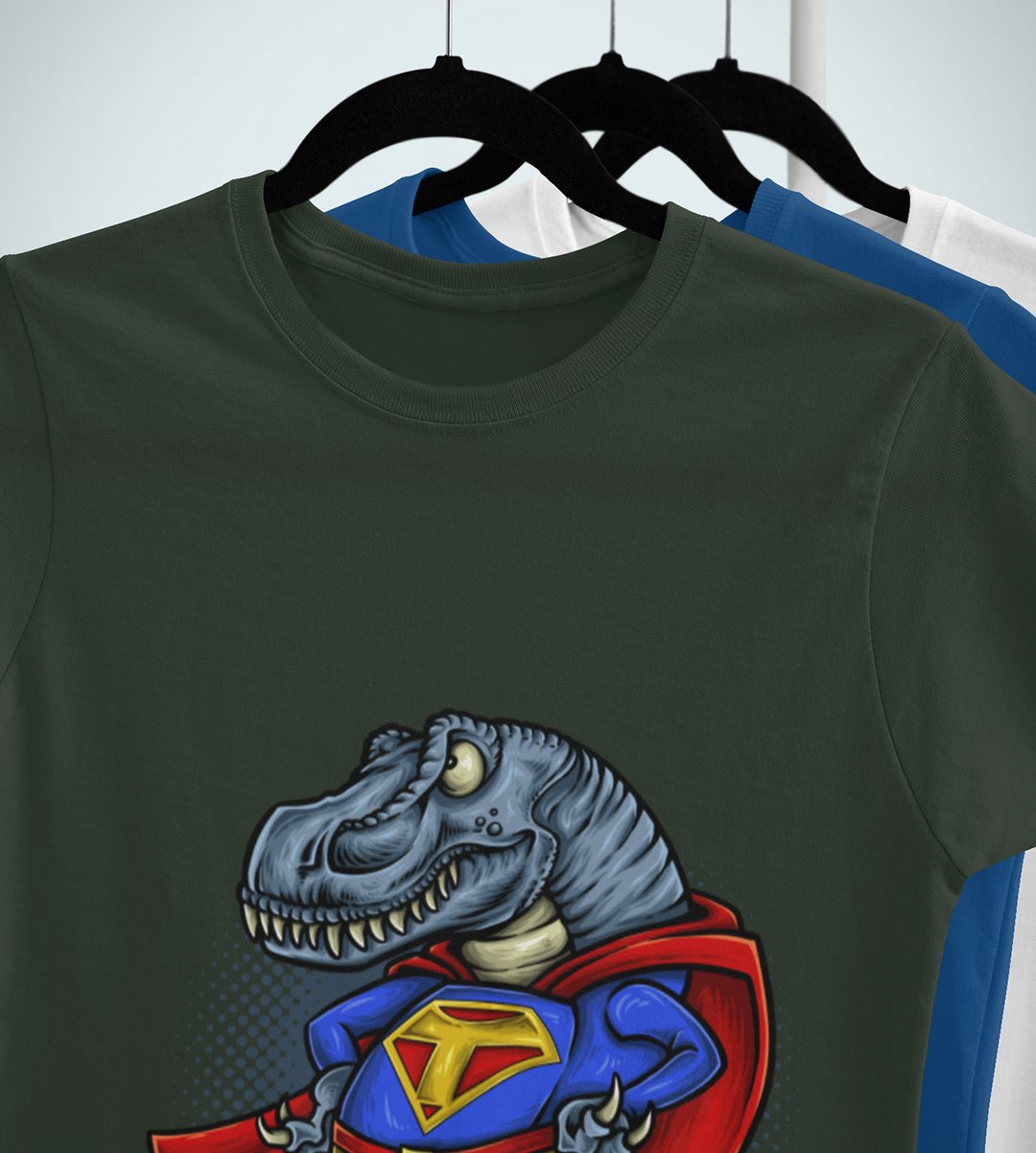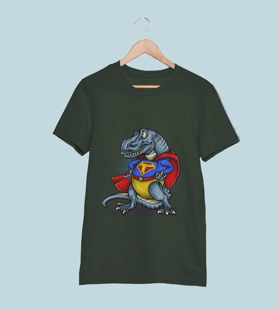 Super Dinosaur -round crew neck cotton tshirts for men