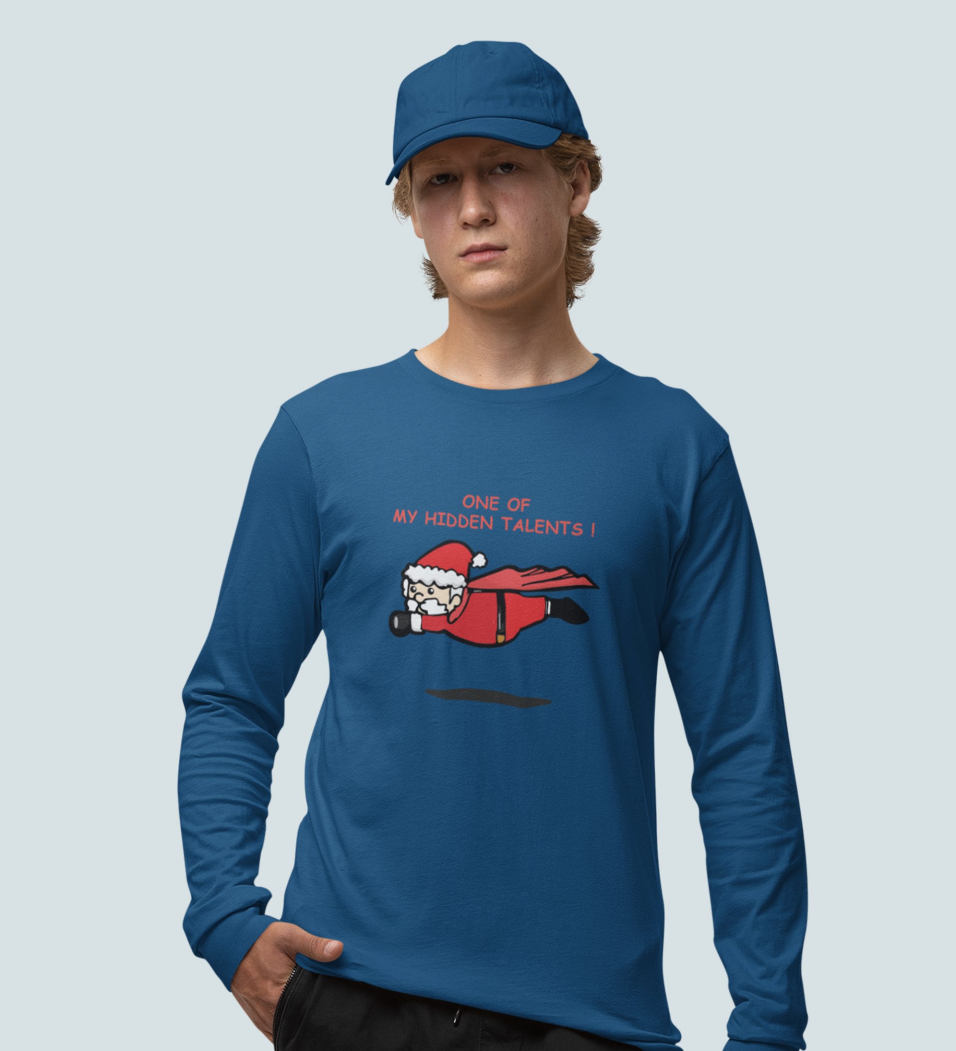 Super Santa: Unique DesignerFull Sleeve T-shirt Blue Best Gift For Boys Girls
