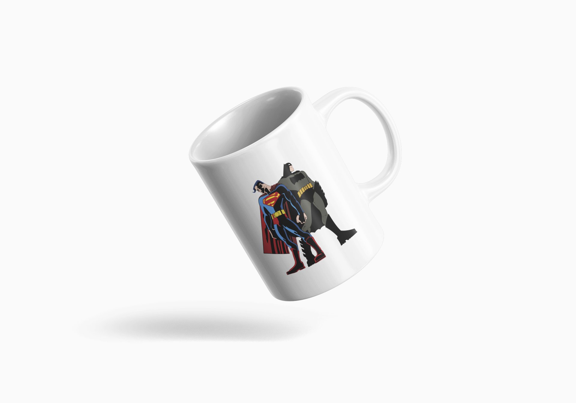 Superman v/s Batman - animation themed printed ceramic white coffee and tea mugs/ cups for animation lovers