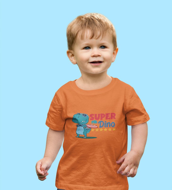 SuperoHero Dino, Boys Printed Crew Neck T-Shirt (orange)