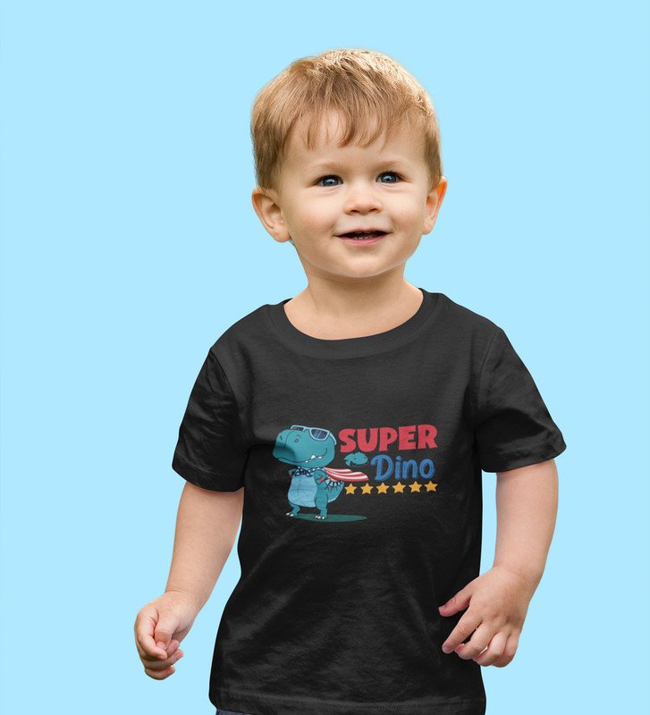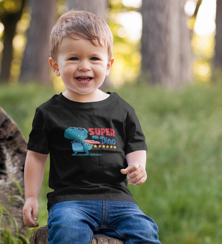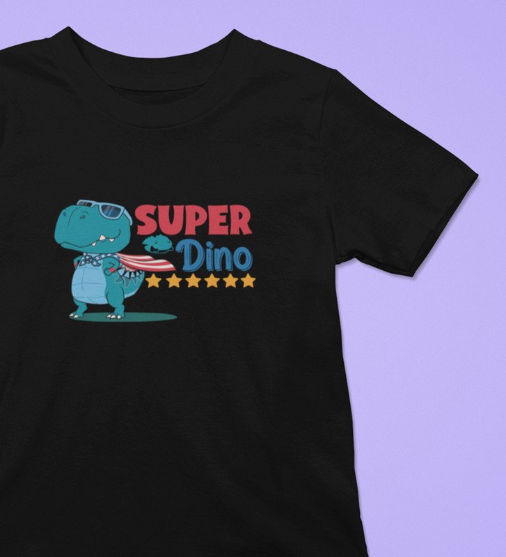SuperoHero Dino, Boys Printed Crew Neck Tshirt (black)