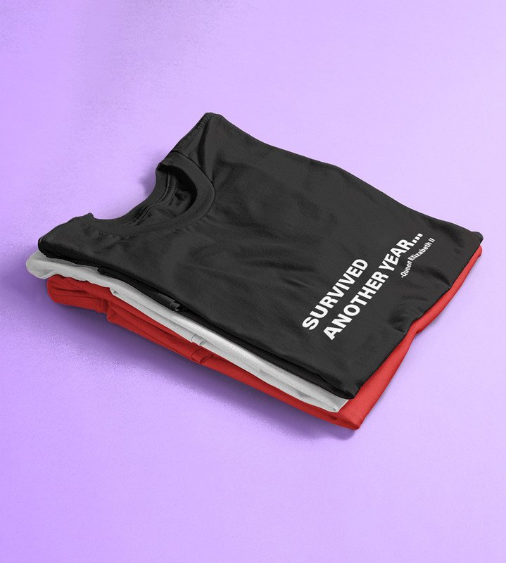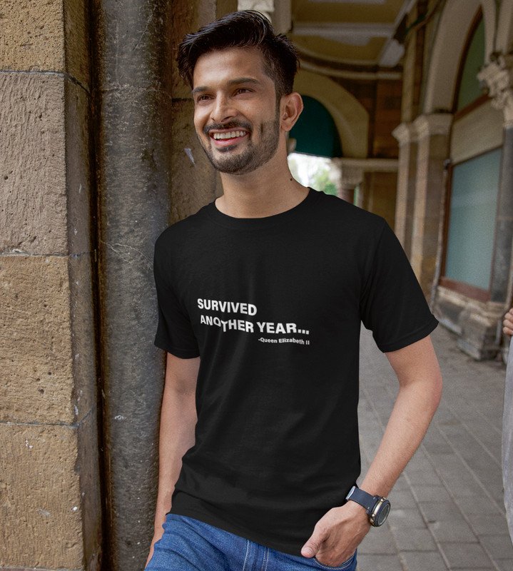 Survived New Year Black Graphic Printed T-shirt For Mens Boys